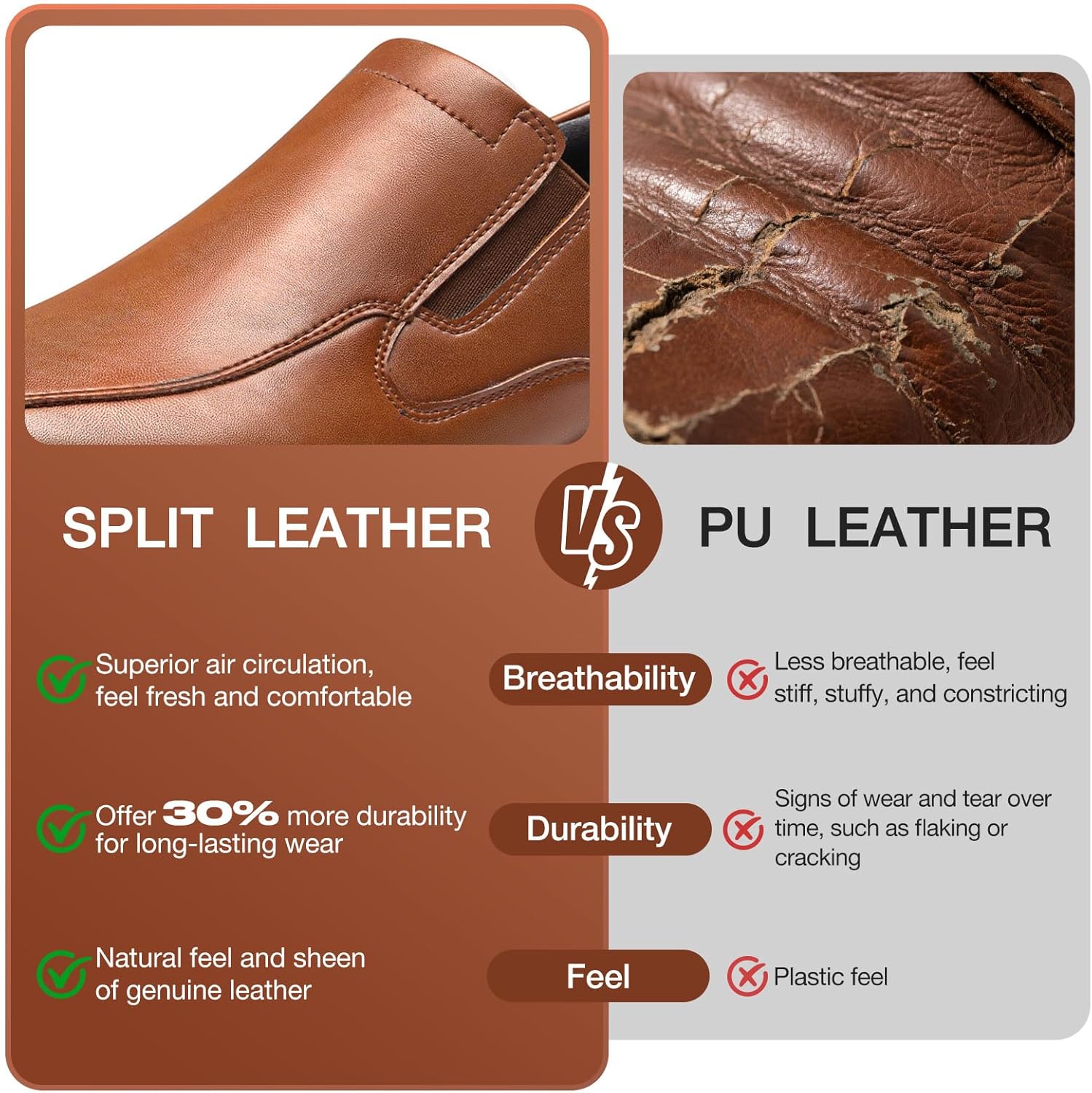 HEEZ Mens Loafers, Split Leather Oxford Dress Shoes for Men, Formal Casual Business Shoes