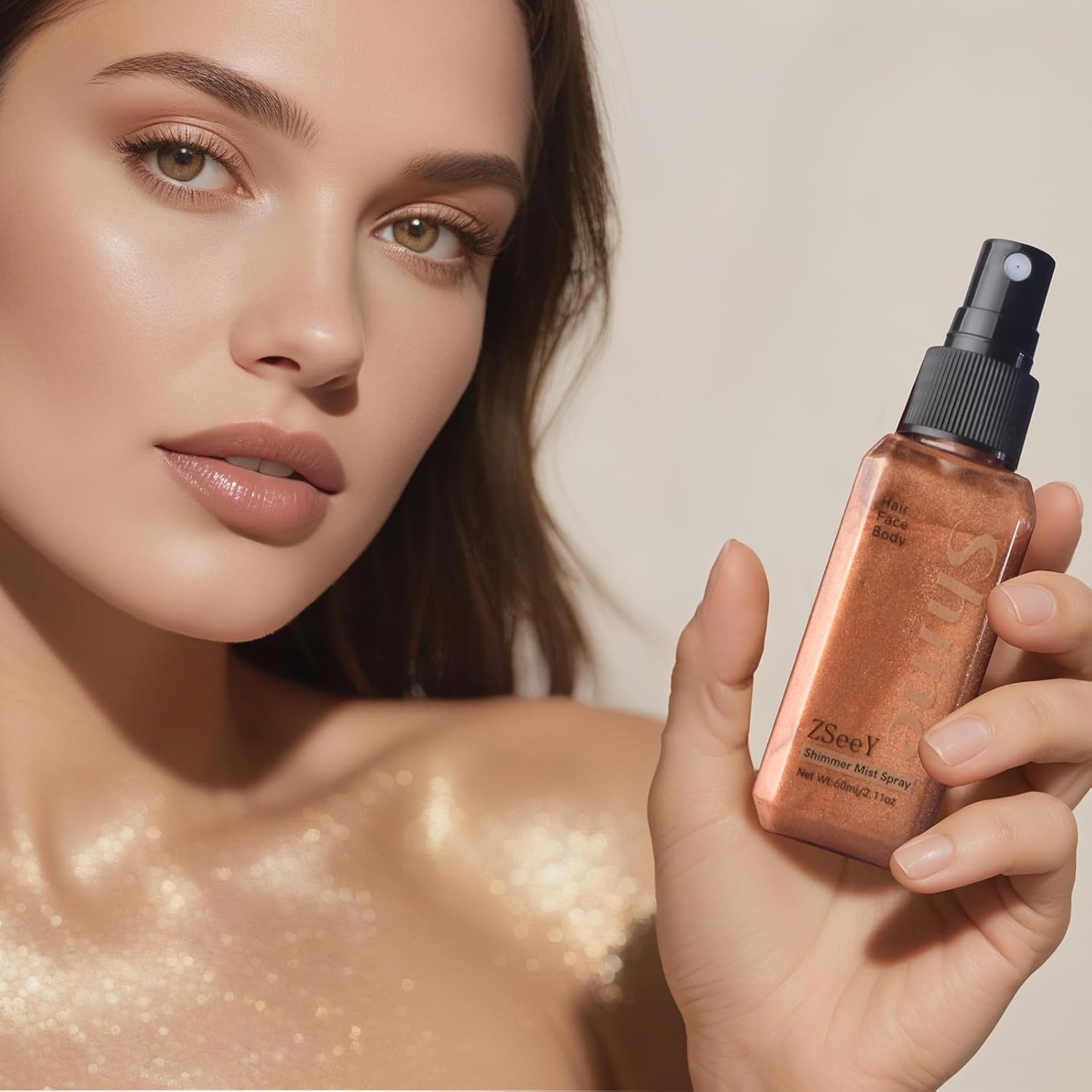 1. This shiny glitter spray is suitable for all skin tones, and its fine formula creates a natural, healthy-looking glow. The lightweight shimmer evenly distributes on the skin for a more natural-looking glow, perfect for any occasion, from natural everyday makeup to sparkling evening looks.