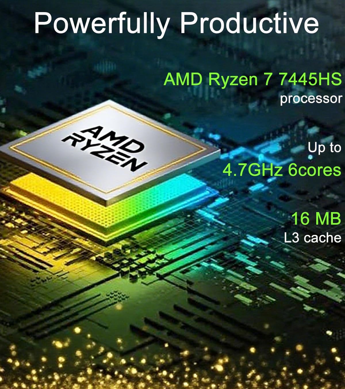 POWERFUL PERFORMANCE — Packed with the AMD Ryzen 7 7445HS (6 cores, up to 4.7 GHz) and NVIDIA GeForce RTX 4050 6GB GPU, it delivers blazing-fast performance for gamers and creators. Enjoy lifelike worlds, ultra-high FPS gaming, and accelerated workflows. Equipped with 16GB DDR5 RAM and 1TB SSD, it handles multitasking, immersive gaming, and creative workloads effortlessly