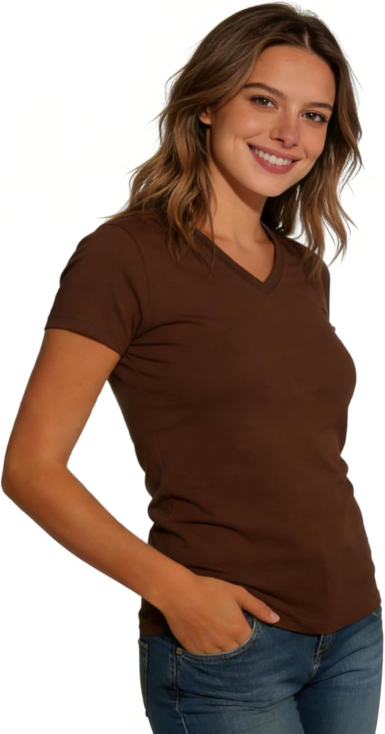 KikizYe Women’s Breathable Cotton V Neck T-Shirt Short Sleeves Solid Color Tee Summer Fashion Tops Tees Women Basic Tees