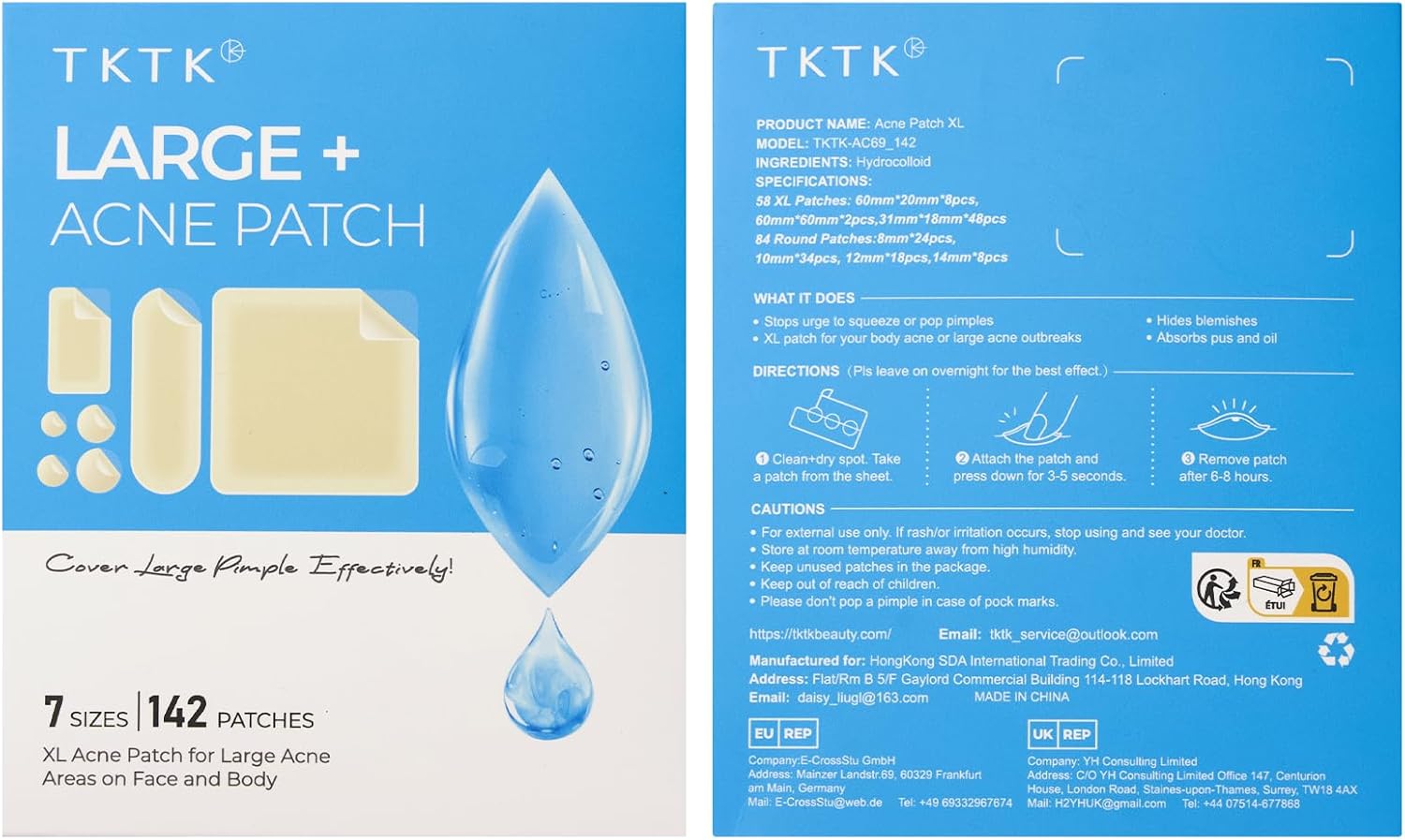 Perfect for Larger Breakouts: With 58 XL pimple patches included, TKTK acne patches are perfect for larger areas like the back, chin, or forehead. Say goodbye to using multiple small patches—these cover more space, making them convenient and effective