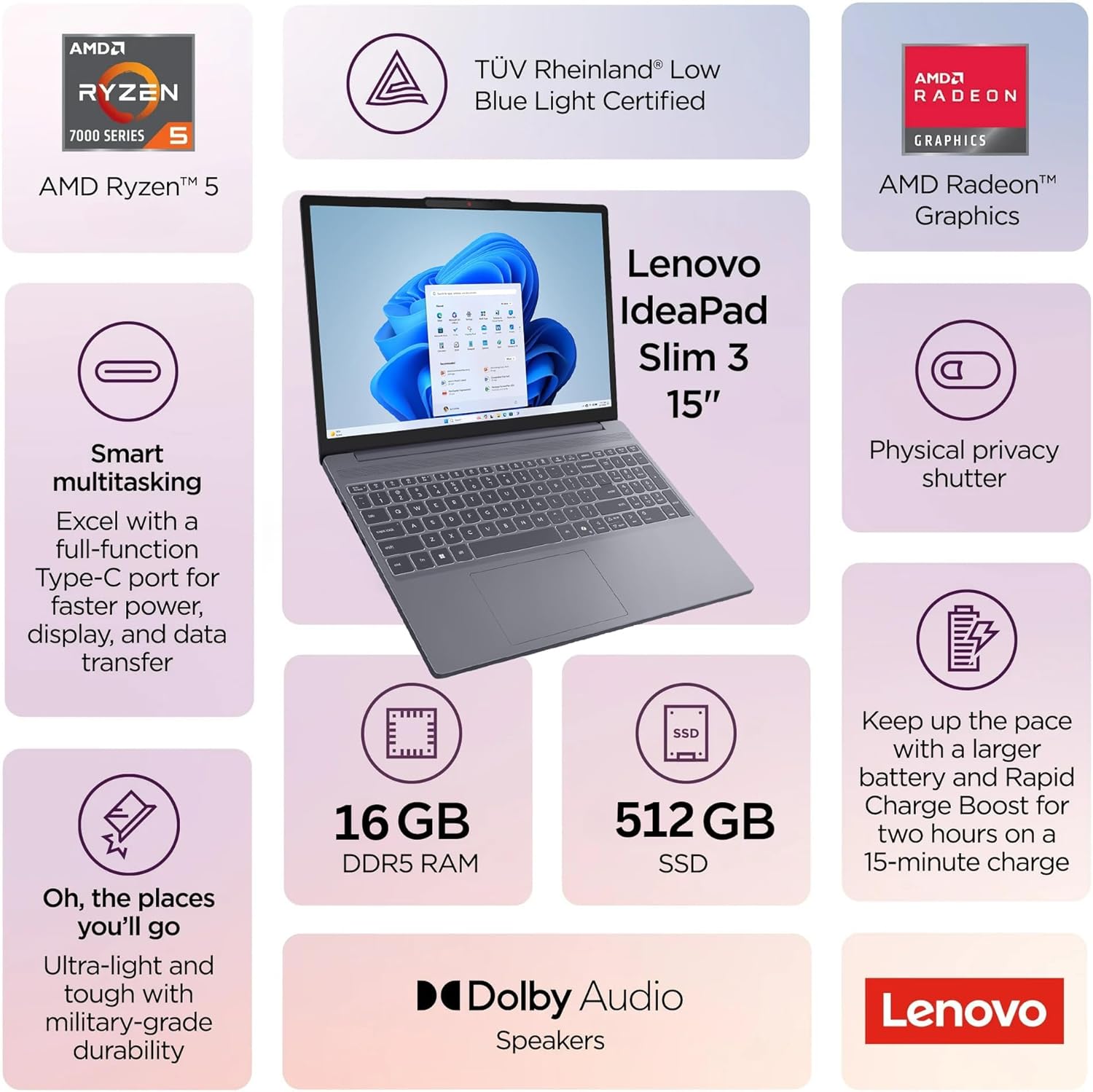 Be the first to review “Lenovo Gaming Laptop, 15″ WUXGA IPS Display, AMD Ryzen 5 7535HS, 8GB DDR5 RAM, 256GB PCIe SSD, Radeon 660M Graphics, Copilot AI PC, WiFi 6, Bluetooth 5.3, HDMI, Type-C, Luna Grey, Windows 11 Home”