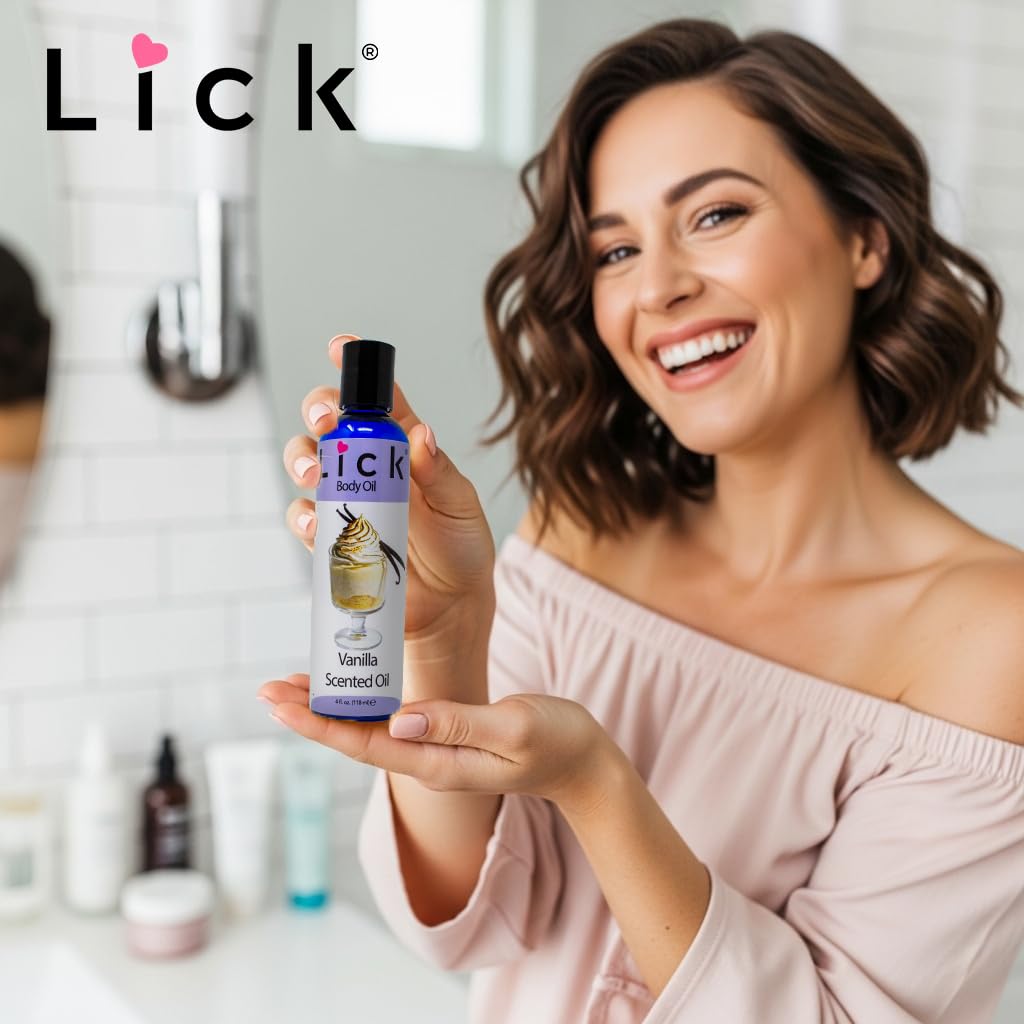 LICK Vanilla Scented Body Oil – Luxurious Hydrating Oil for Radiant Skin, Enriched with Natural Castor, Almond, Jojoba Oils, Vitamin E. Ideal for Women, Daily Care 4 fl oz.