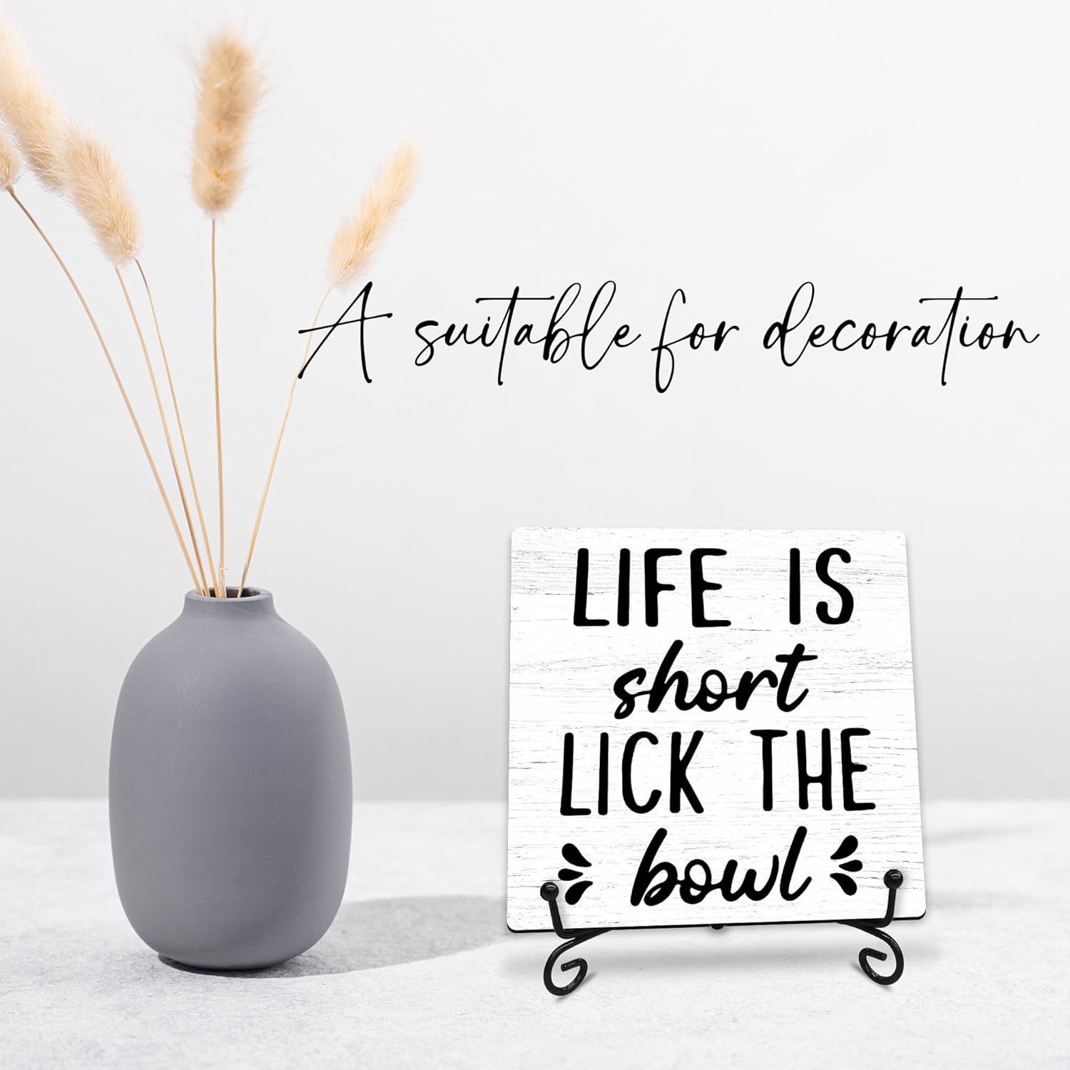 Life is Short Lick the Bowl Wooden Sign – 5″ Funny Wooden Plaque With Metal Support – Rustic Tabletop Bathroom, Toilet, Kitchen Room Decor – Housewarming Gifts For Family & Friends – A01