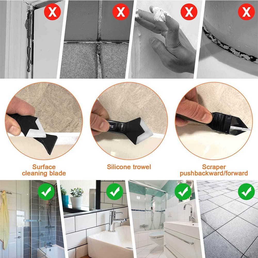 MANY WAYS TO USE: The caulking tools can be used for home, kitchen, bathroom, window, sink joint and so on. Finish to most silicone jobs, any edge, corner, joint. Easy to clean with a damp cloth and reuse, reduce the waste of sealant, saves money and time.