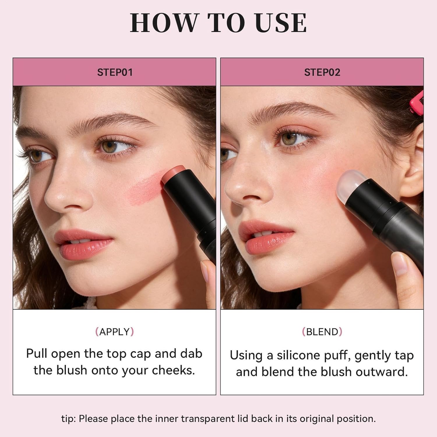 Double-Ended Design Convenience: The Cream Blush Stick features a double-head cream-brush combination that ensures seamless application, providing instant natural radiance while the silicone applicator delivers precision for effortless blending