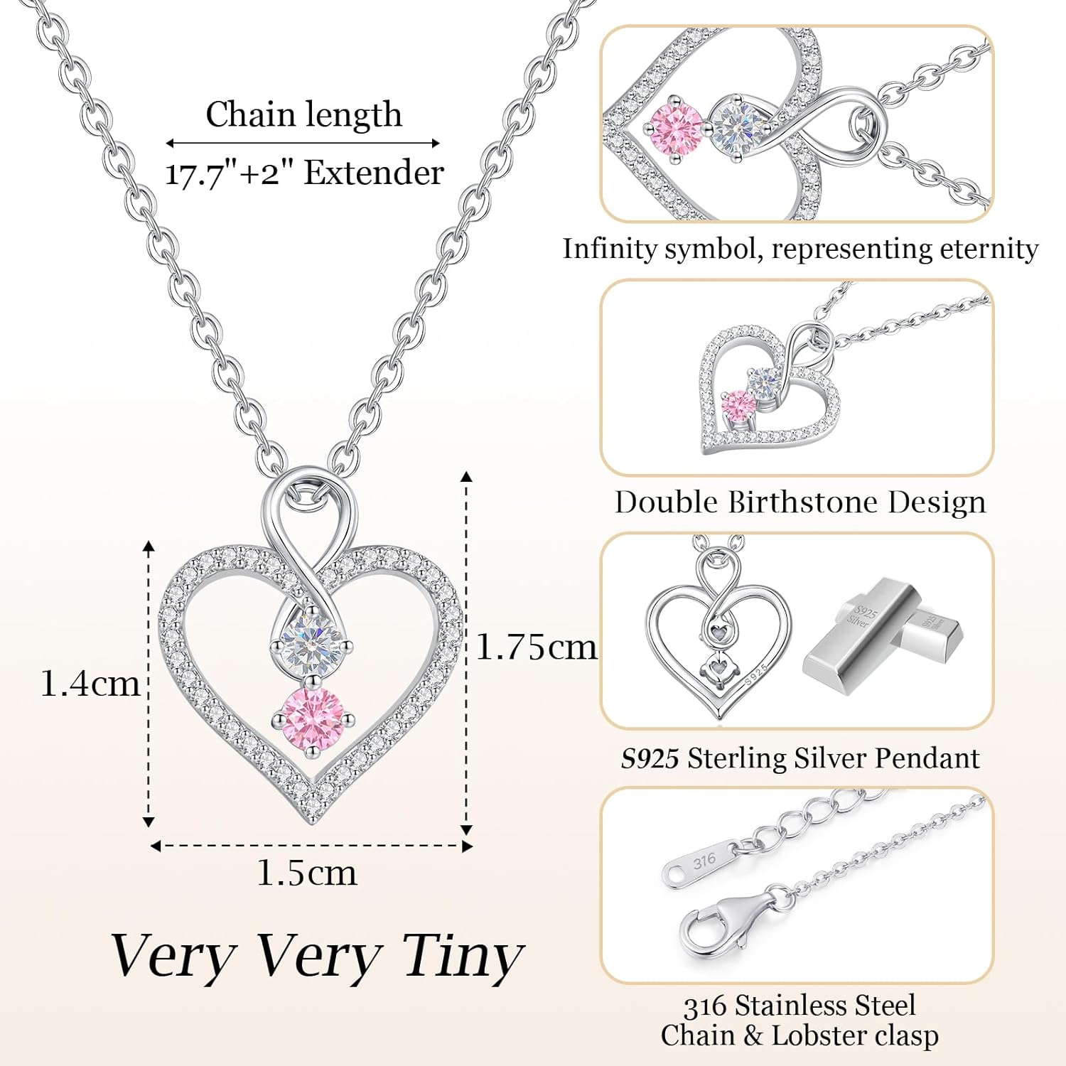 LOUISA SECRET Infinity Double Birthstone Necklace, 925 Sterling Silver Tiny Pendant Heart Necklace for Women Wife Her, Best Jewelry Gift Heart Jewelry Meaningful Gift for Valentine’s Day, Christmas, Birthday Anniversary