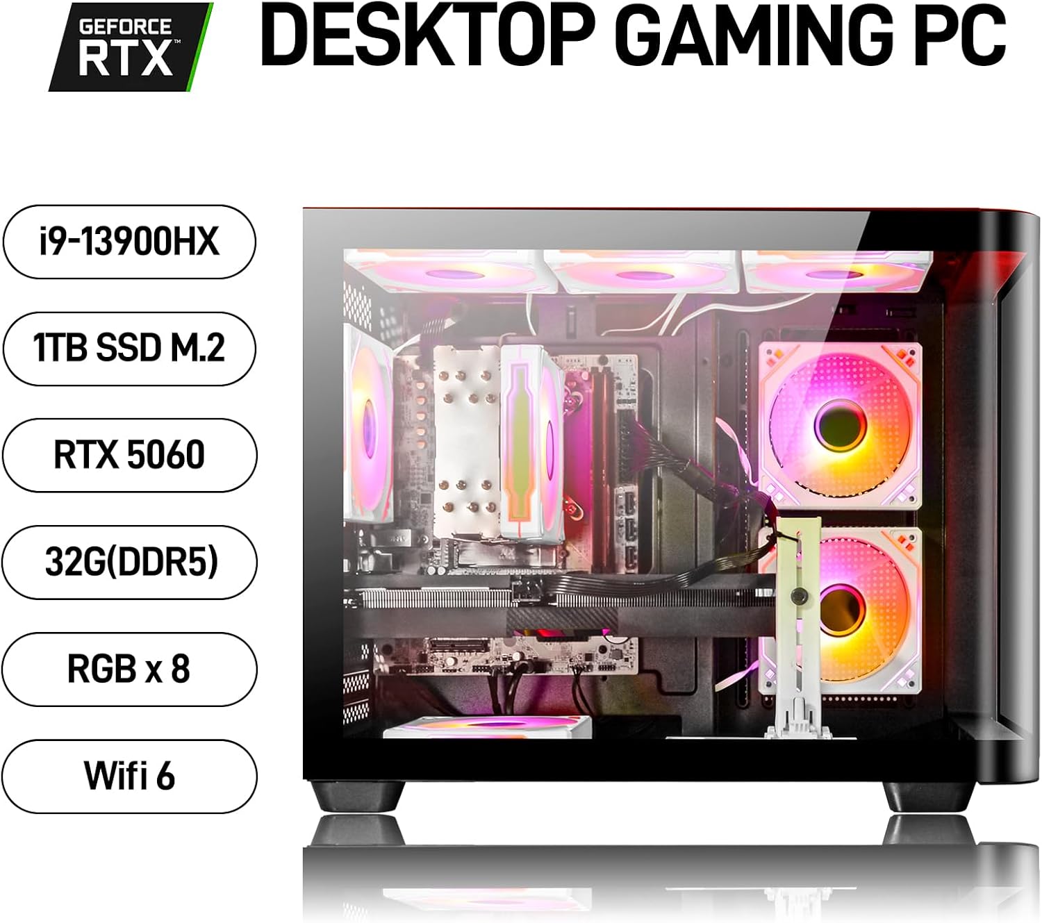 LXZ Gaming PC Desktop Computer, Core i9-13900HX, GeForce RTX 5060, 32GB DDR5 RAM, 1TB NVMe 3.0 SSD, Wi-Fi 6-4K 8K VR Ready Gaming & Streaming PC for Gamers & Creators