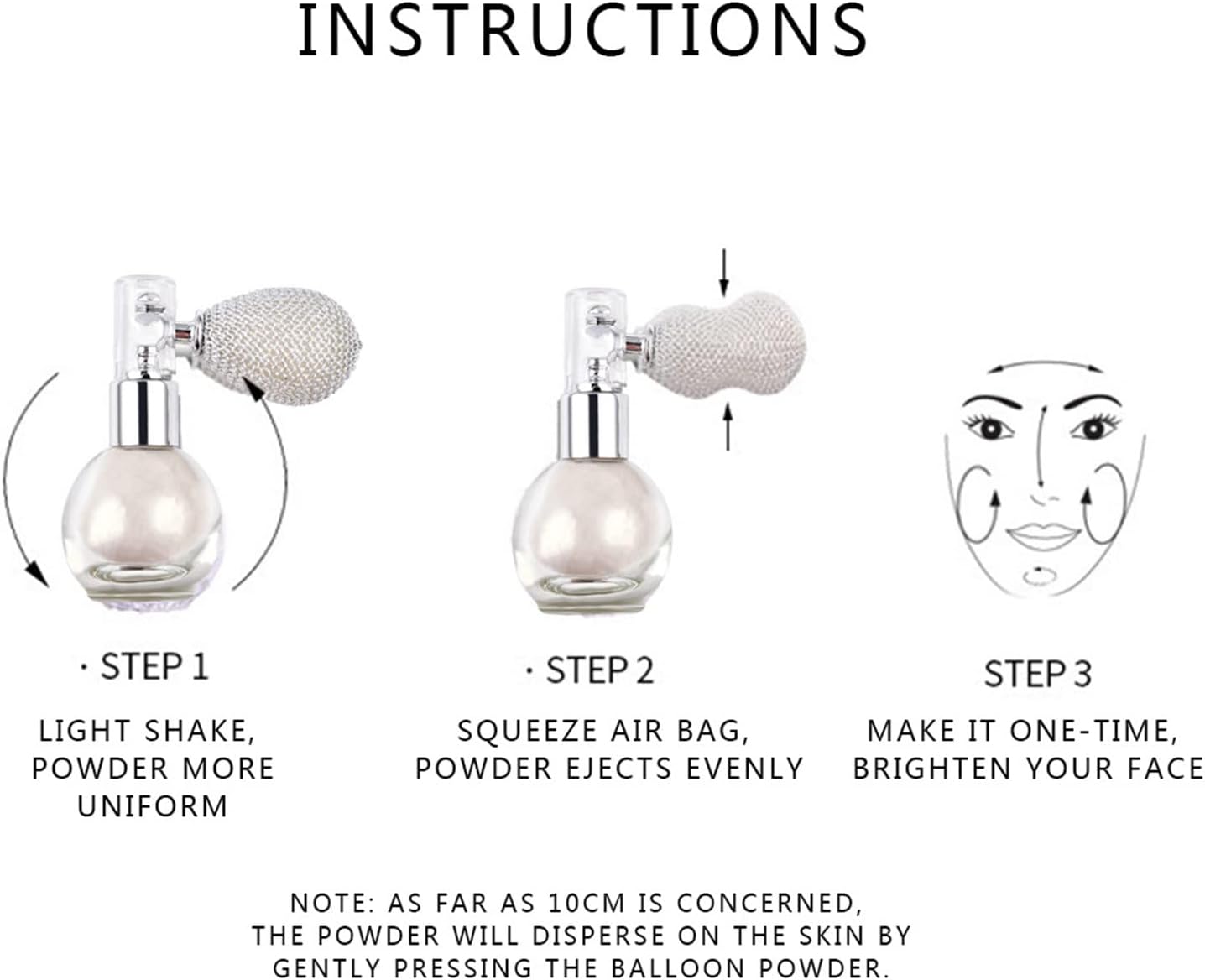 ✨【Easy To Apply/Carry】The glitter highlighter powder is easy to spray and has nice coverage. Just press the airbag gently, and spray the nozzles randomly towards your face, hair or body, and that will last most of the day.