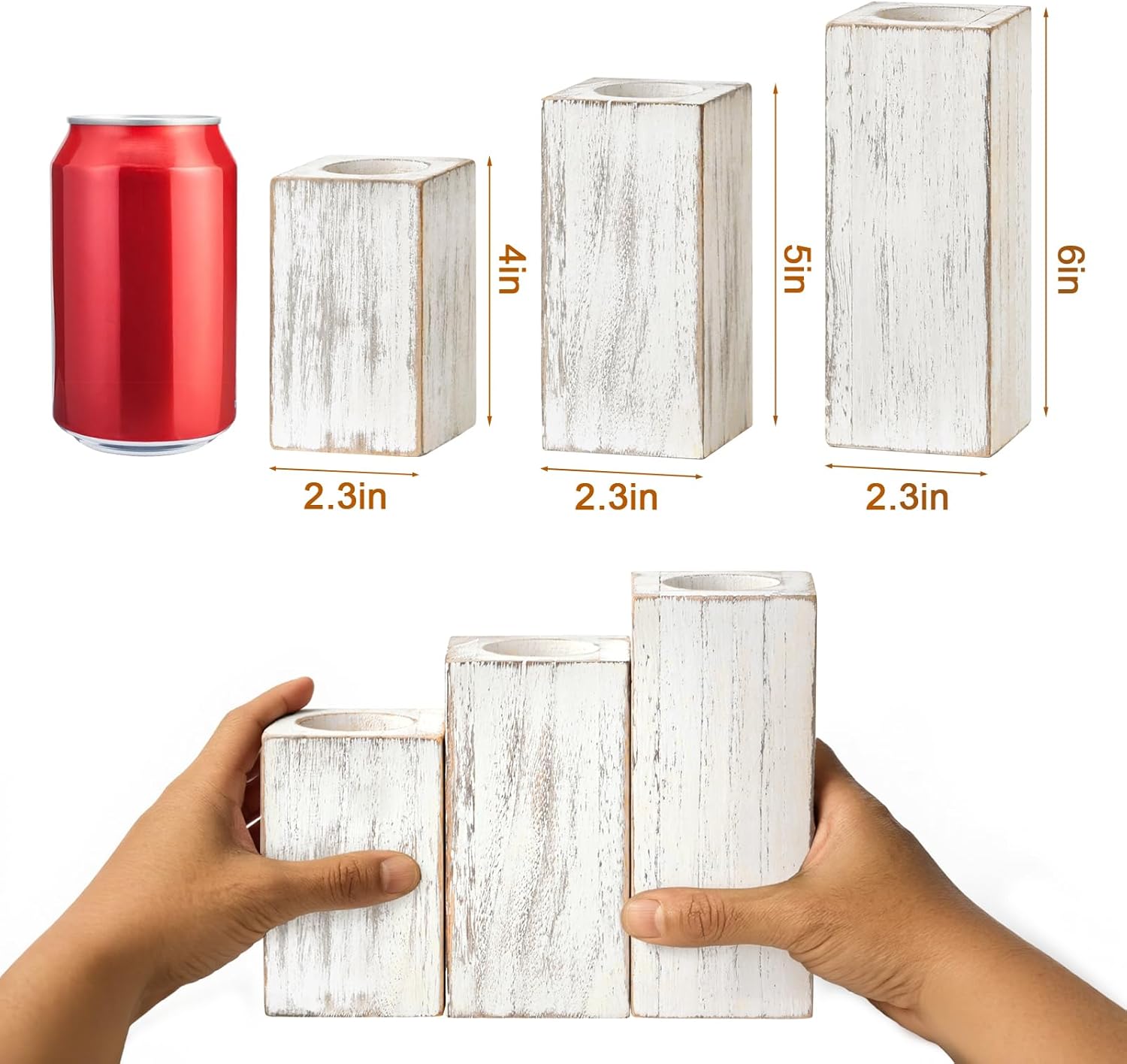 Suitable Size: These vintage candle holders come in different heights — the tallest is 6″ and the shortest is 4″, with each holder measuring 2.5″ wide. Their convenient sizes make these flickering flameless candles perfect for table centerpieces, kitchen table centerpiece, tea party decorations, windows deor, counters deor, and more.You can use it as a Christmas candle, and it also makes a lovely rustic Christmas decorations.