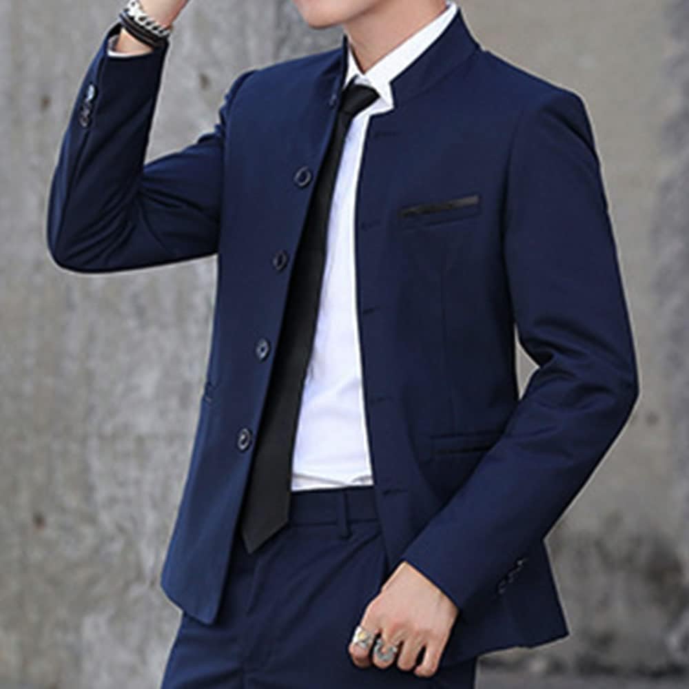 Men Casual Suit Blazer Jackets Stand Collar Business Sport Coats Jacket Slim Fit Button Solid Chinese Tunic Suits Prom