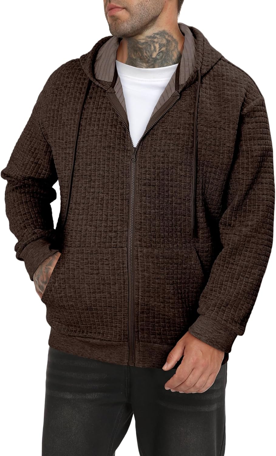 Men’s Casual Waffle Knit Hooded Solid Winter Sweatshirt with Pockets Long Sleeve Fashion Basic Hoodies