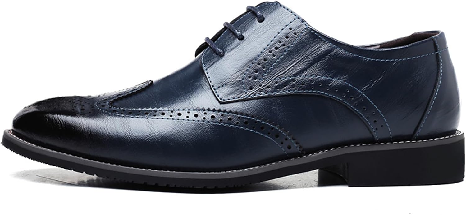 Men’s Classic Leather Formal Business Oxford Wingtip Lace Up Retro Casual Dress Shoes for Men Comfortable