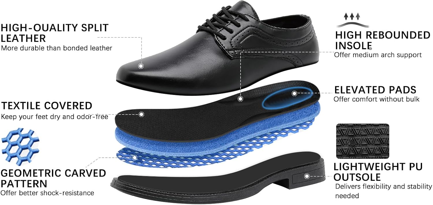Men’s Oxford Formal Dress Shoes Comfortable Classic Business Lace Up Derby Plain Toe