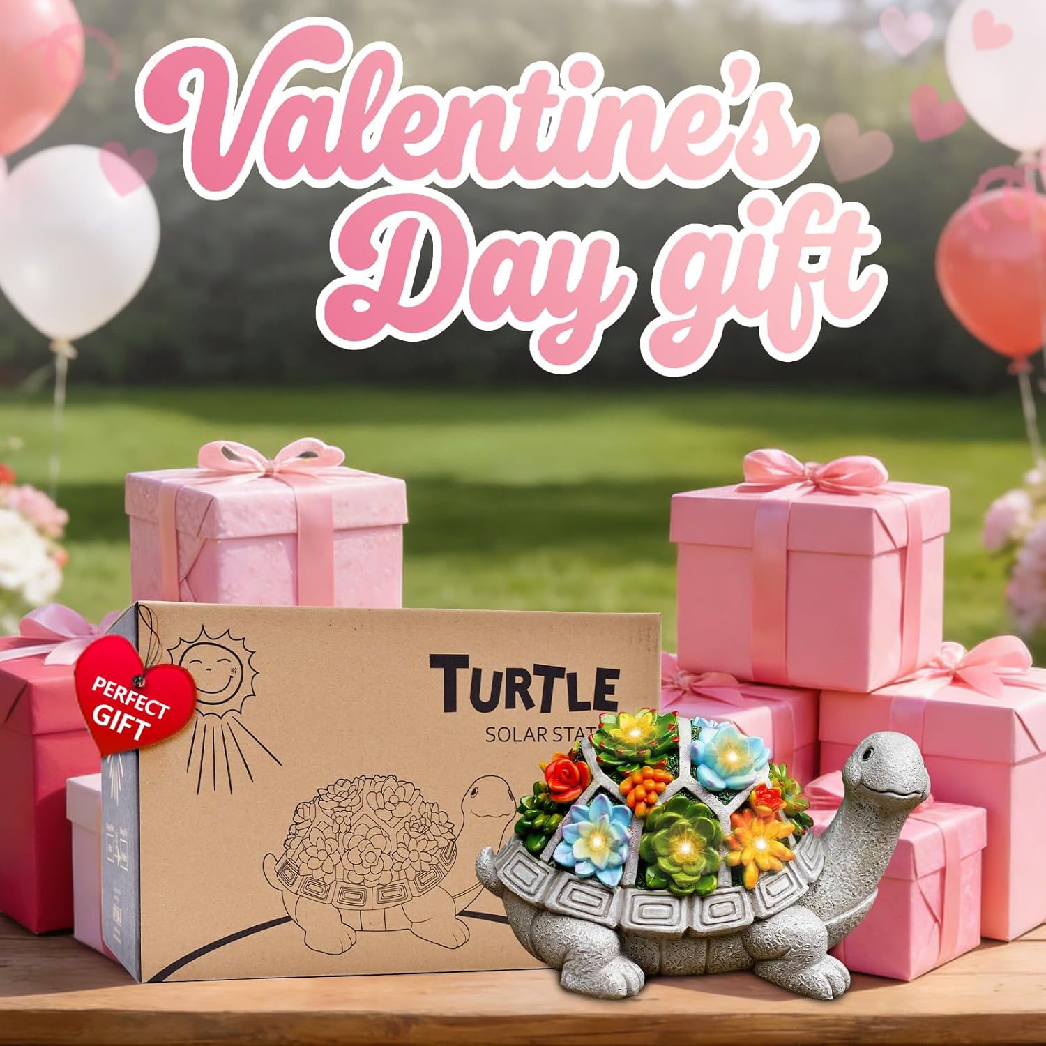 Nacome Solar Garden Outdoor Statues Turtle with Succulent and 7 LED Lights – Lawn Decor Tortoise Statue for Patio, Balcony, Yard Ornament – Chrismtas Gifts for Mom Grandma