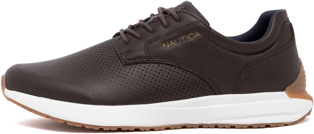 Nautica Men’s Lace Up Dress Shoes – Casual Sporty Sneakers for Work and Everyday Wear with Vegan Leather Upper and Cushioned Sole Step into a look that blends modern style with everyday versatility. These Nautica men’s lace up dress shoes deliver the polish of a dress shoe with the relaxed comfort of a sneaker. Designed for work, weekends, and everything in between, they offer a refined silhouette that works as easily with chinos and a button-down as with jeans and a tee. Crafted with a durable vegan leather upper, the shoe features subtle perforated details that add breathability and texture. The cushioned insole and lightweight midsole provide all-day support, while the lace up closure ensures a secure fit. A clean white outsole adds a fresh, sporty edge, giving these shoes a balanced look that moves seamlessly from office hours to after-hours. Built with the quality and attention to detail Nautica is known for, these shoes combine long-lasting wear with everyday comfort. Whether you need a reliable option for commuting, casual Fridays, or weekend outings, this pair is designed to keep up while keeping you looking sharp.
