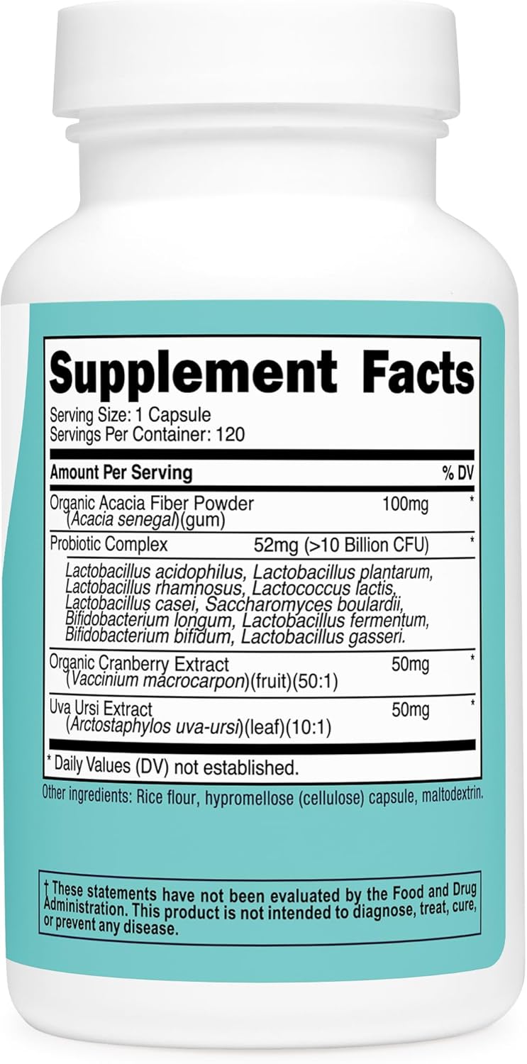 Premium ingredients: Crafted with Acacia Fiber, Uva Ursi, and Cranberry Extract, these capsules offer a unique blend of beneficial nutrients for enhanced well-being.