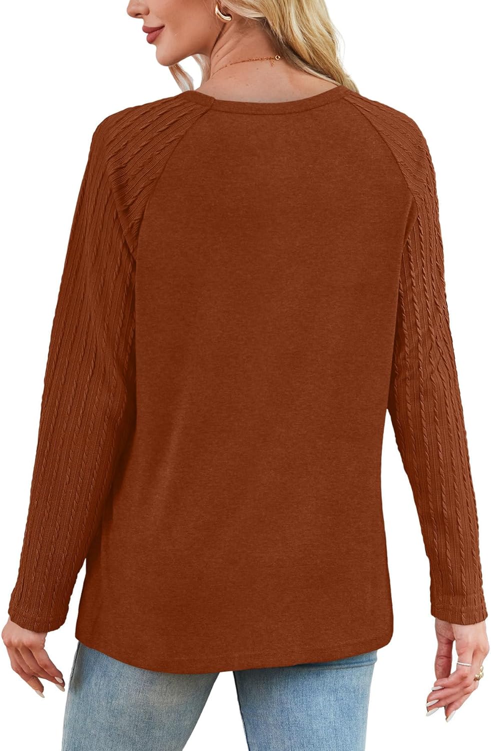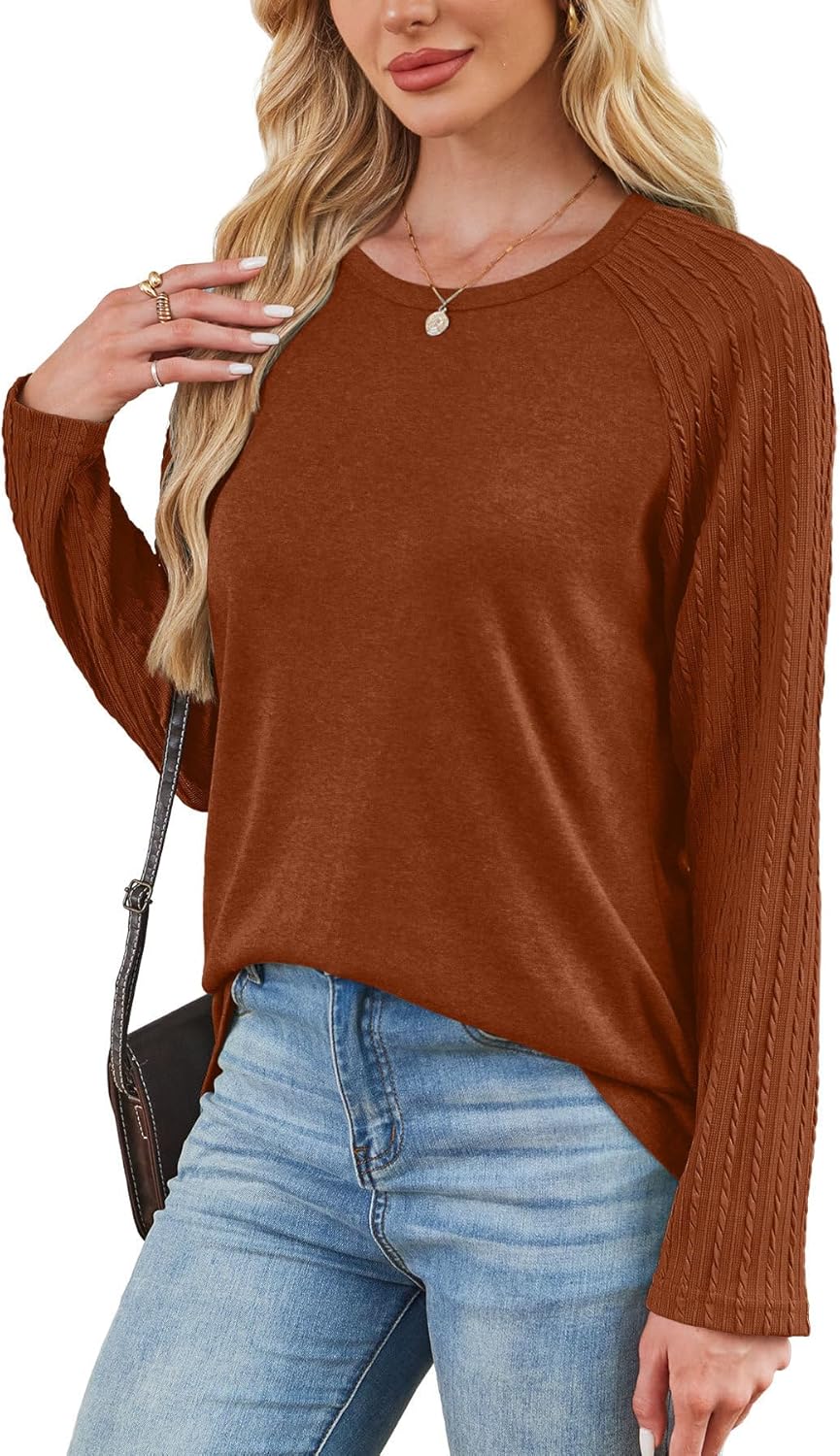 OFEEFAN Long Sleeve Shirts for Womens Fall Fashion 2025 Cute Cable Knit Sleeves