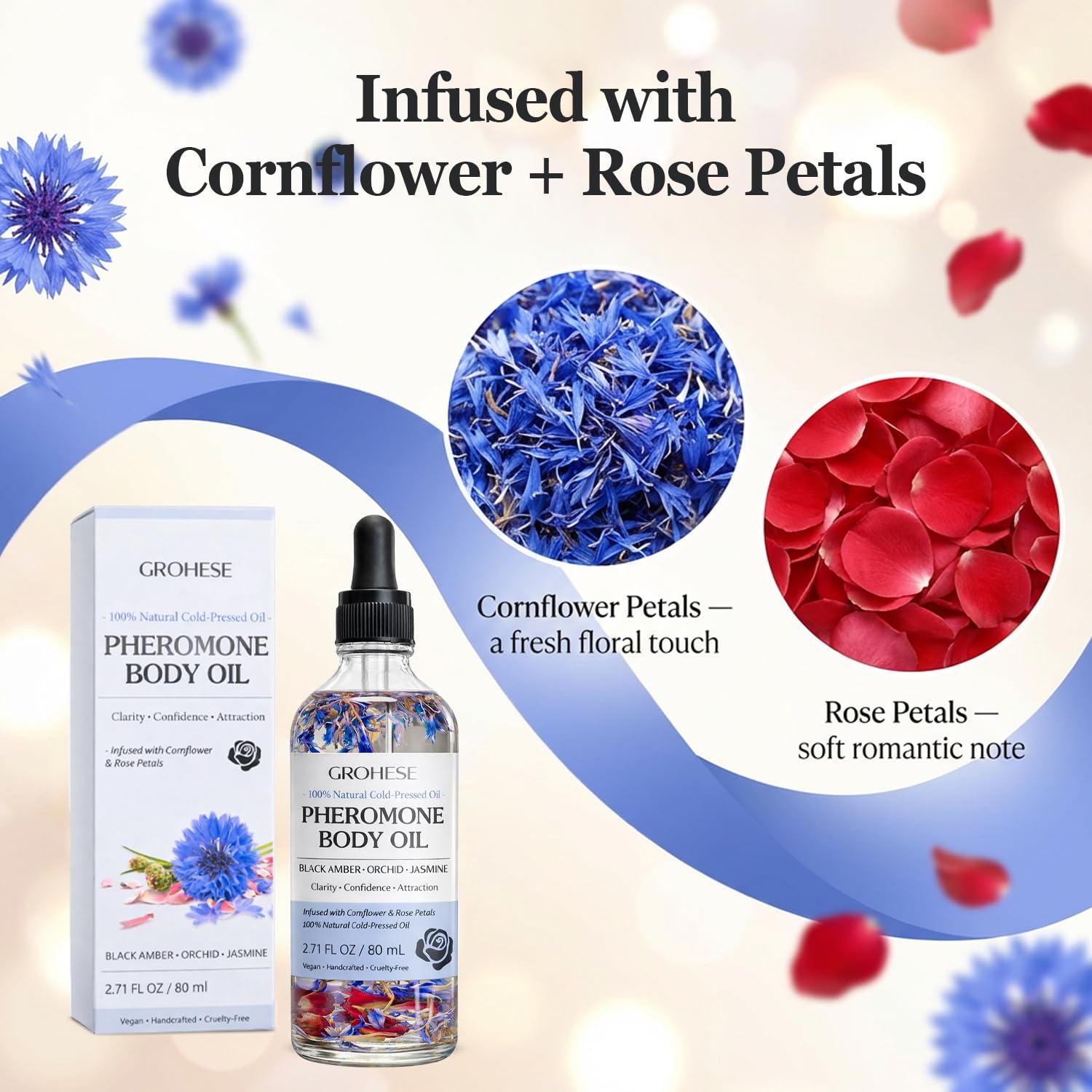 Pheromone Body Oil for Women, Natural Cold-Pressed Body Oil with Black Amber Orchid & Jasmine Scent, Lightweight Moisturizing Body & Massage Oil, 2.71 fl oz (80 mL)