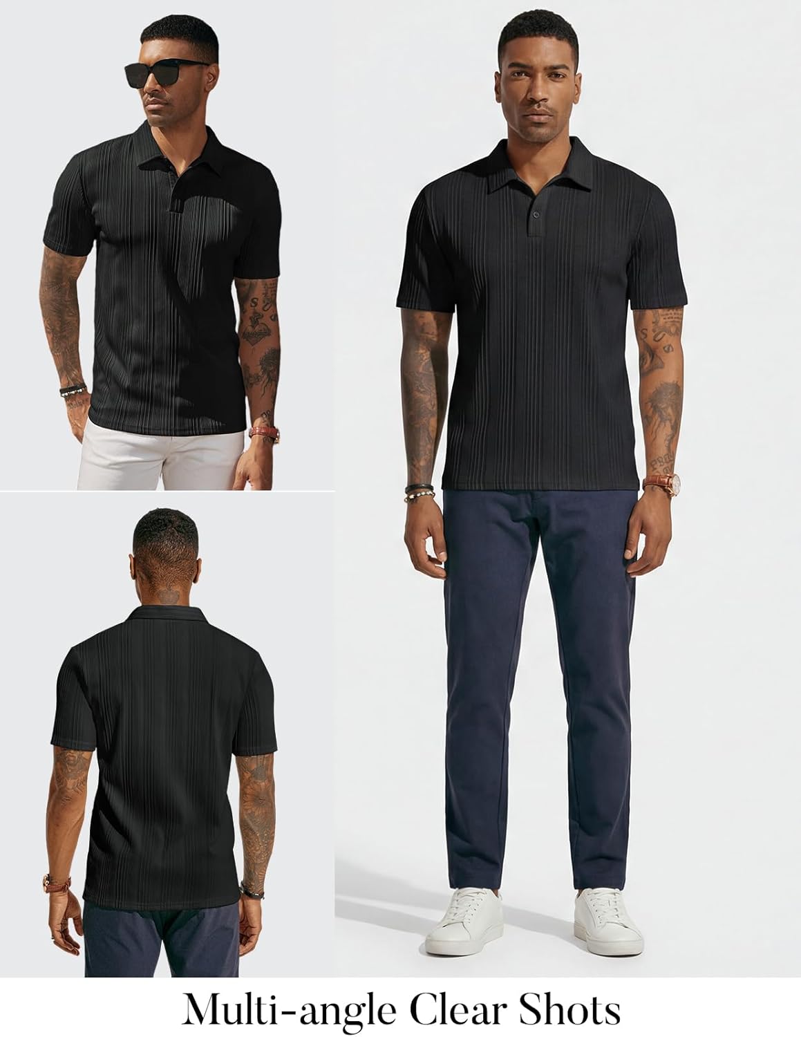 PJ PAUL JONES Mens Textured Knit Polo Shirts Regular Fit Stretchy Golf Shirts