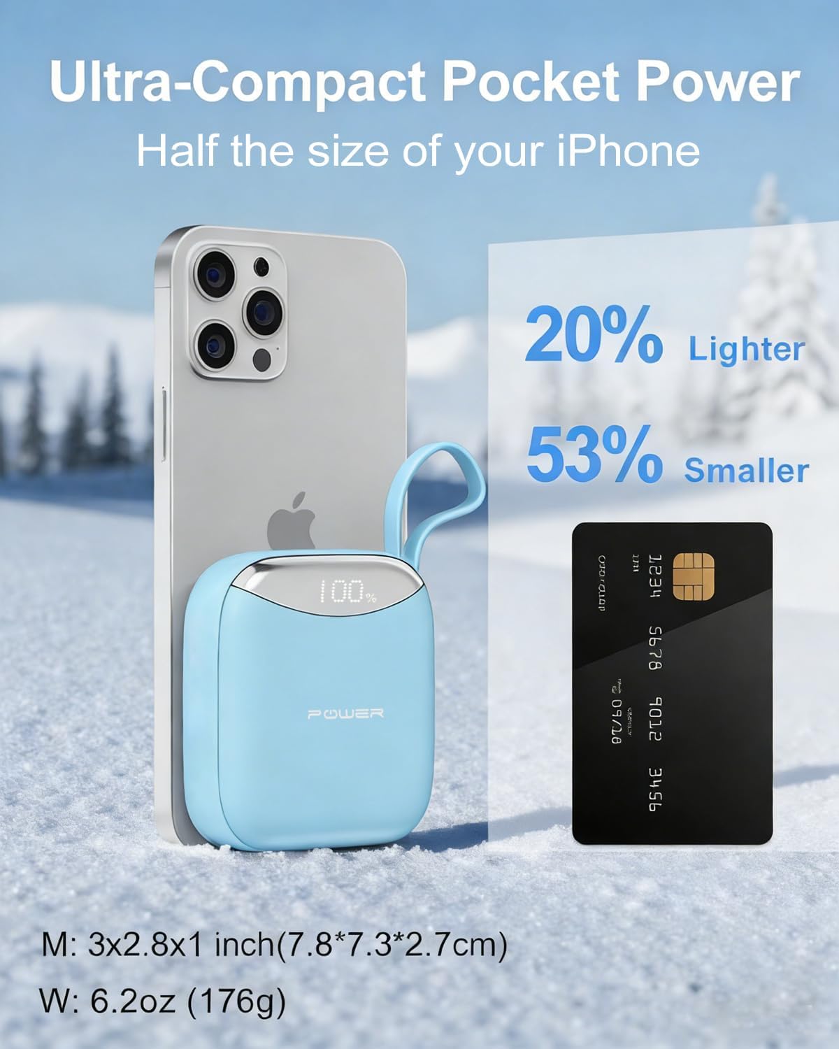 Compact & Lightweight Design: Half the Size of a Phone—This mini 10000mAh power bank is only 3.1 × 2.9 × 1.1 inches and weighs just 6.2 oz, making it half the size of a phone. Whether you’re commuting to work, traveling on a plane, or packing for a road trip, this ultra-compact portable phone charger fits seamlessly in your pocket or small bag. Say goodbye to bulky backups and enjoy reliable power on the go.