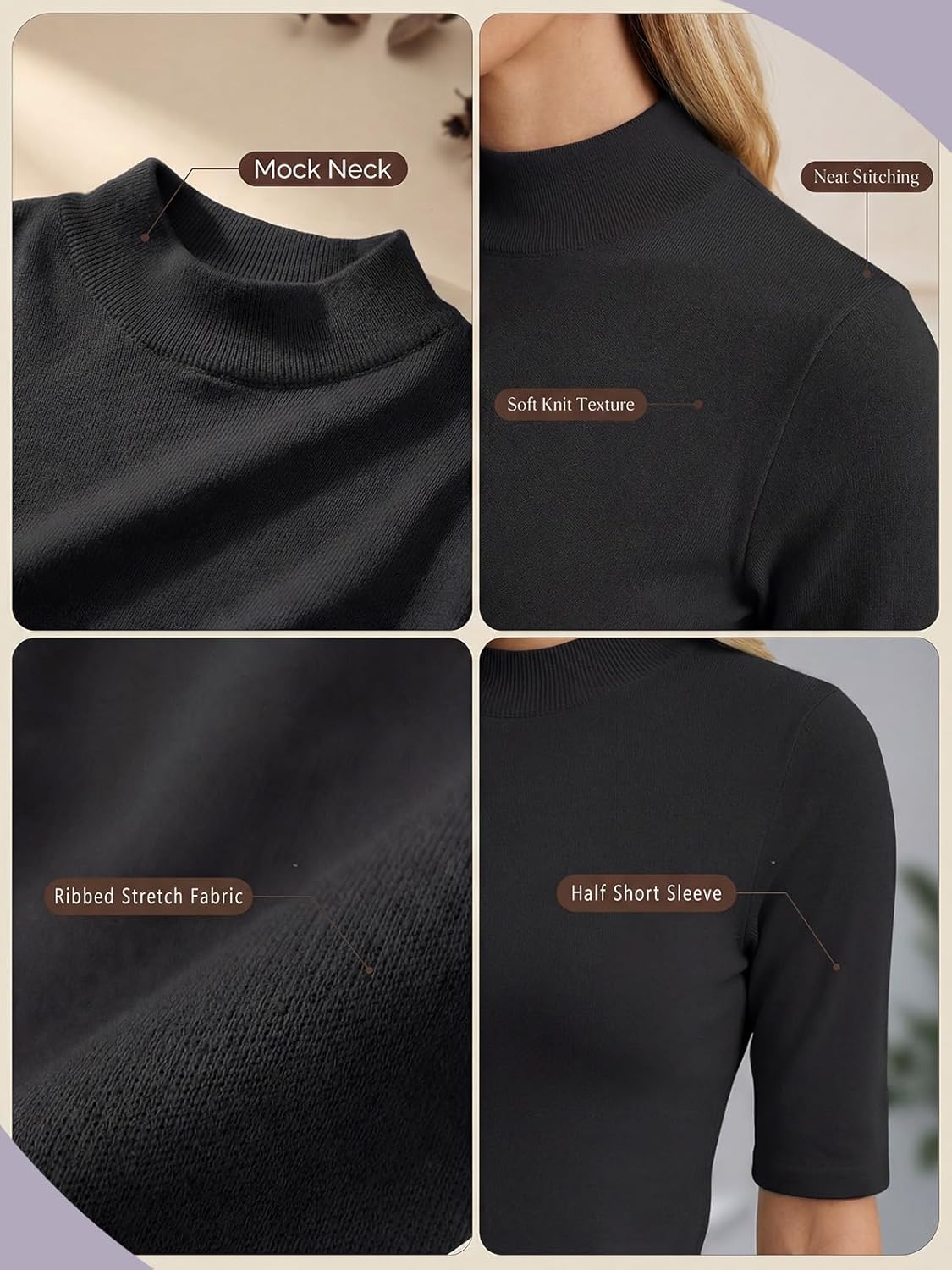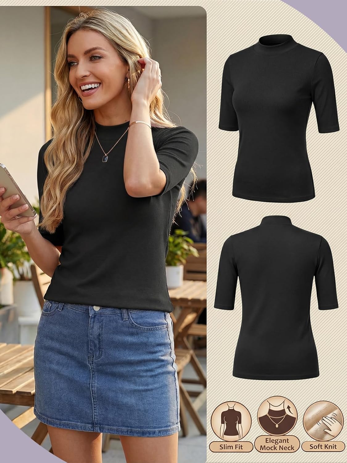 Flattering style but not constricting, pullover, Mock neck / Turtleneck / Half Sleeve, basic shirts, cute tops.Dark Color Fabric is not see-through,top length above the hips.