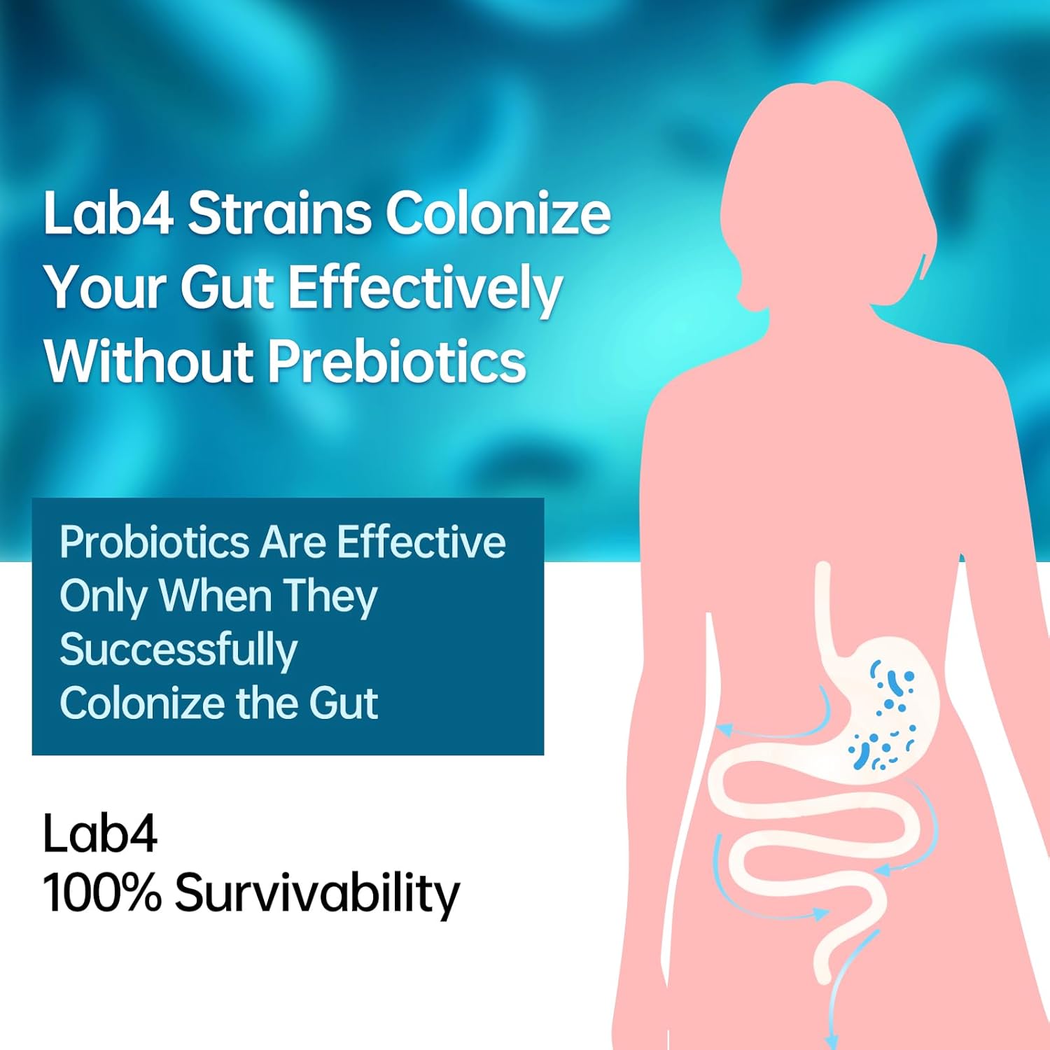 WITHOUT THE NEED FOR PREBIOTICS: Most probiotics die in stomach acid before they even start working. Lab4 strains are clinically validated by Cardiff University to survive the harsh gastric environment and are specifically designed to effectively colonize your gut