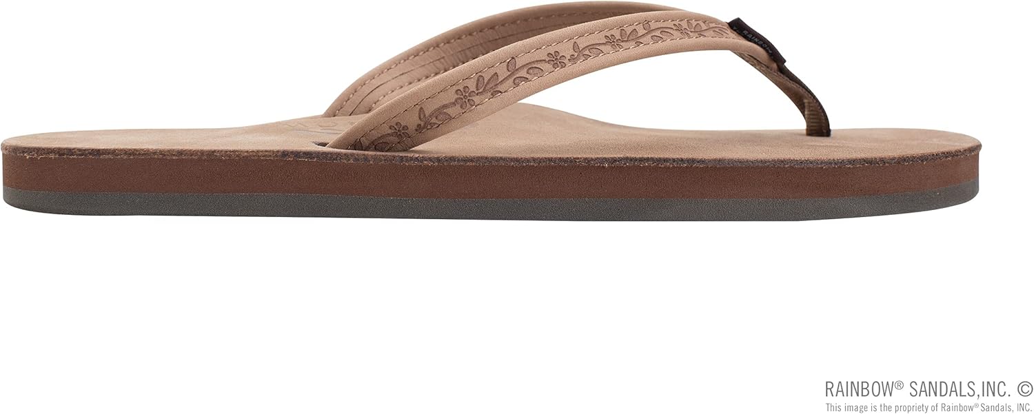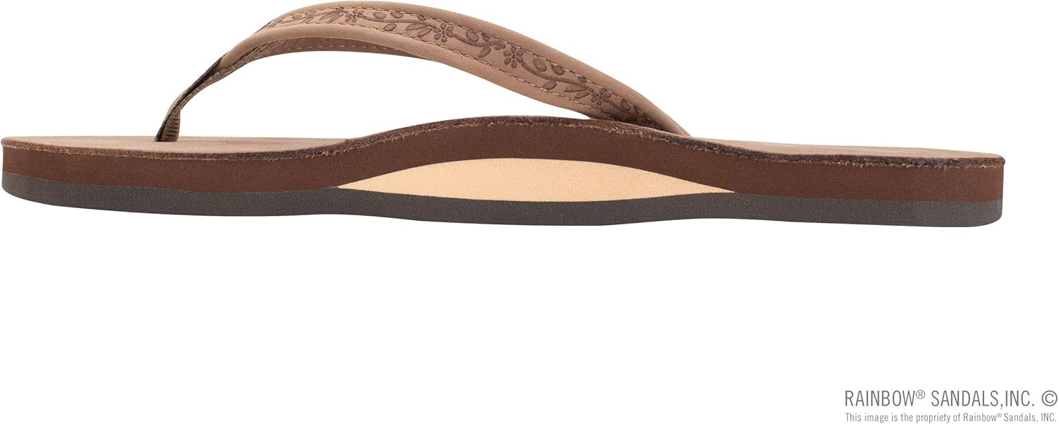 Rainbow Sandals Ladies Las Flores – Single Layer Premier Leather with a Floral 1/2″ Narrow Strap