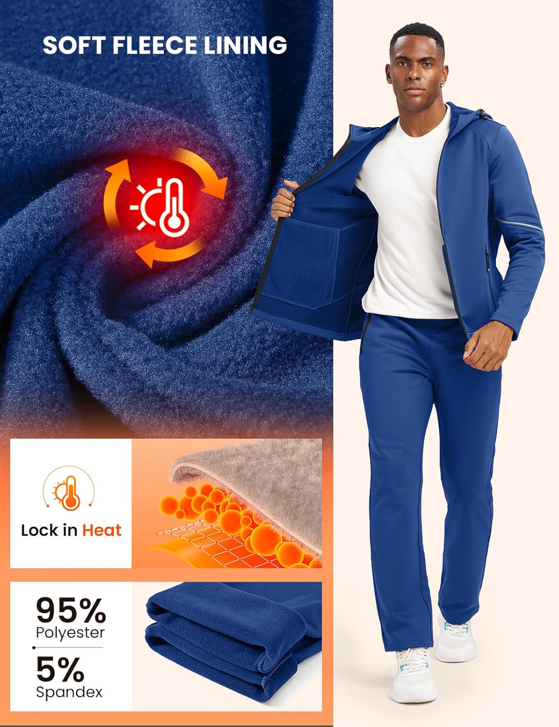 Rdruko Men’s Fleece Track Sweat Suit 2 Piece Set Hooded Winter Warm Up Jogging Tracksuit Sweatsuit Sets