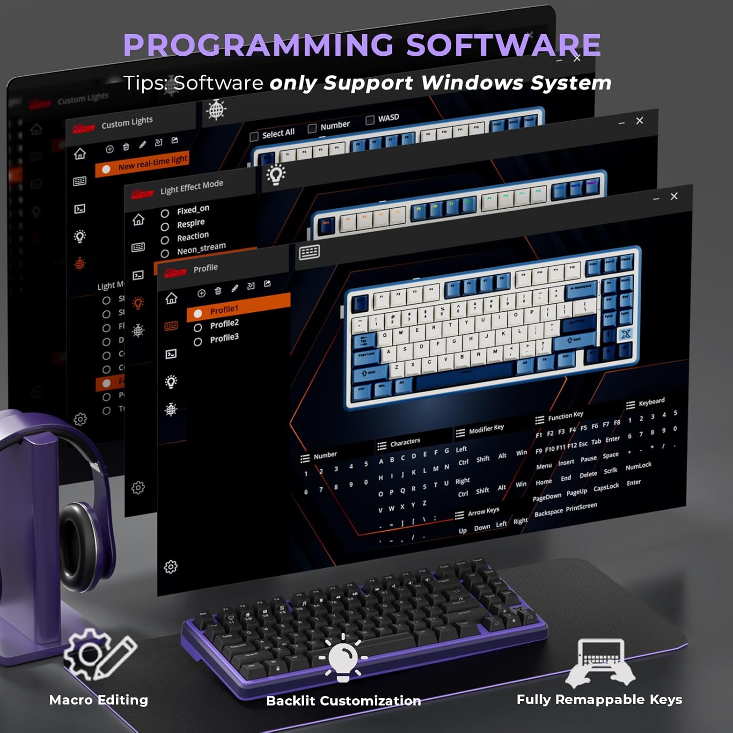 11 Ice-Blue Backlight Modes: Illuminate your gaming with 11 customizable single-color backlight modes on this dynamic gaming keyboard; record your own light patterns to match your playstyle, creating a personalized atmosphere