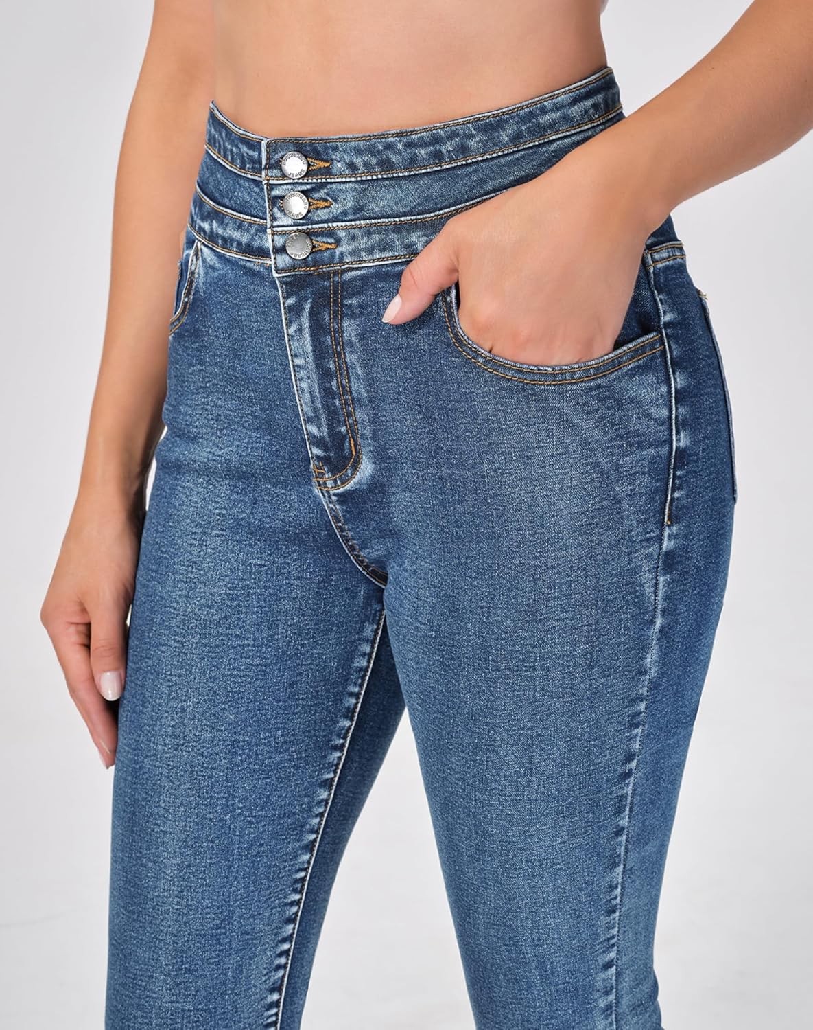 roswear Women’s Capri Jeans Stretchy with Frayed Hem Skinny Tummy Control Pants