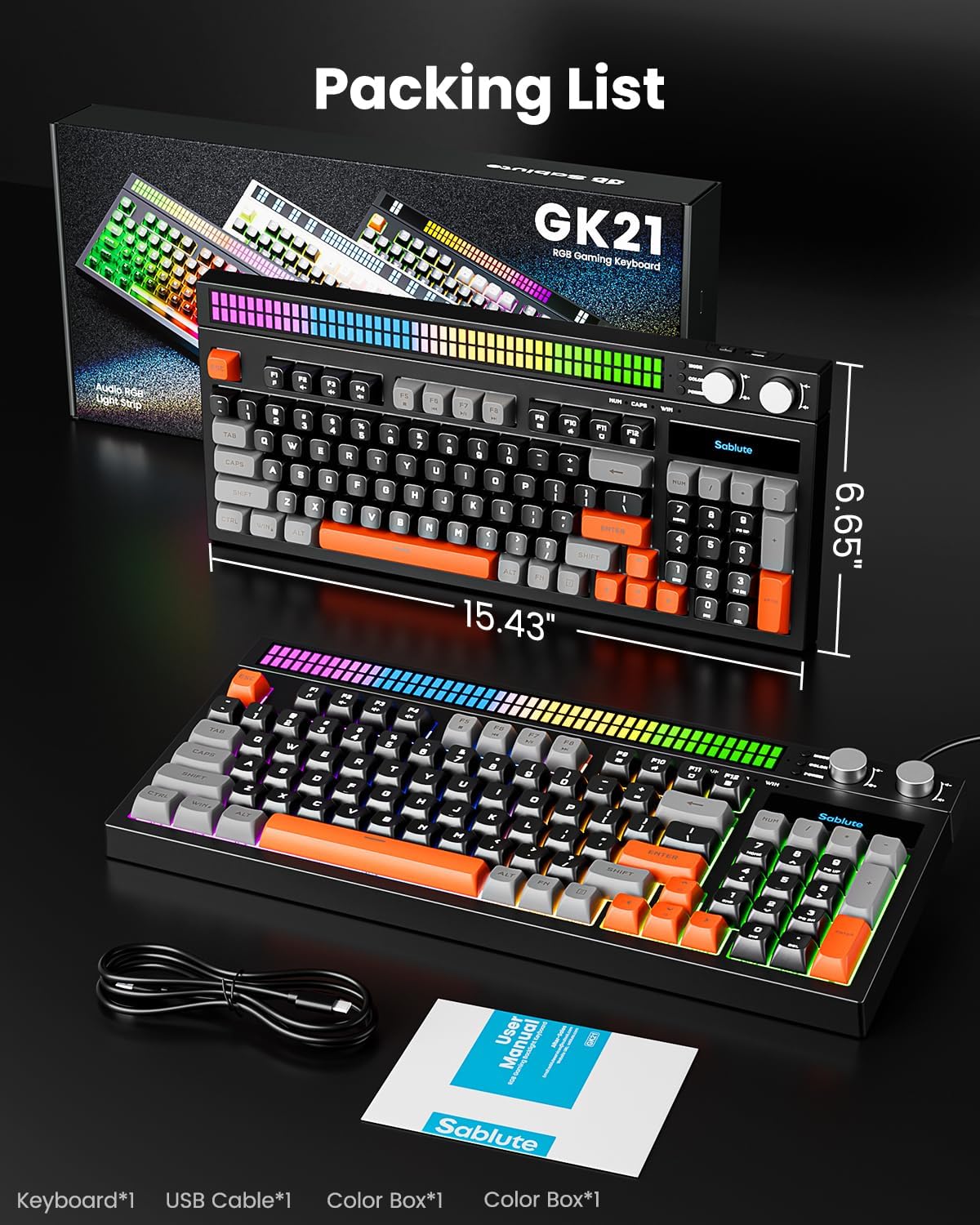 SABLUTE Keyboard Gaming – Audio-Sync RGB Light Strip, 19-Key Anti-Ghosting, Dual Control Knobs, Adjustable Stand, Ultra-Low Latency Quiet Mechanical Feel for PC Gamers(Black