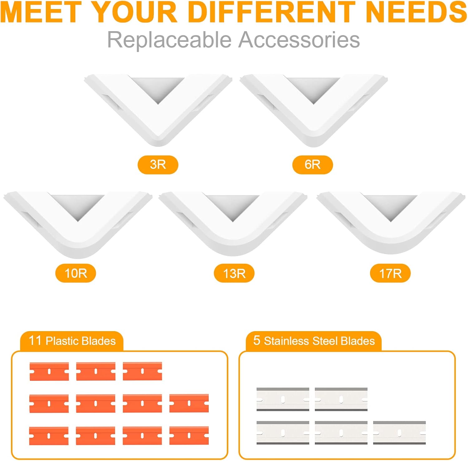 More Replaceable Accessories(21 pcs): AMZBUY caulking tool kit provides 5 angled silicone pads that meet various usage angles in life and carry out finer smoothing work to create perfect caulk lines; We’ve also matched this tool with 16 strong blades so you don’t have to buy replacements