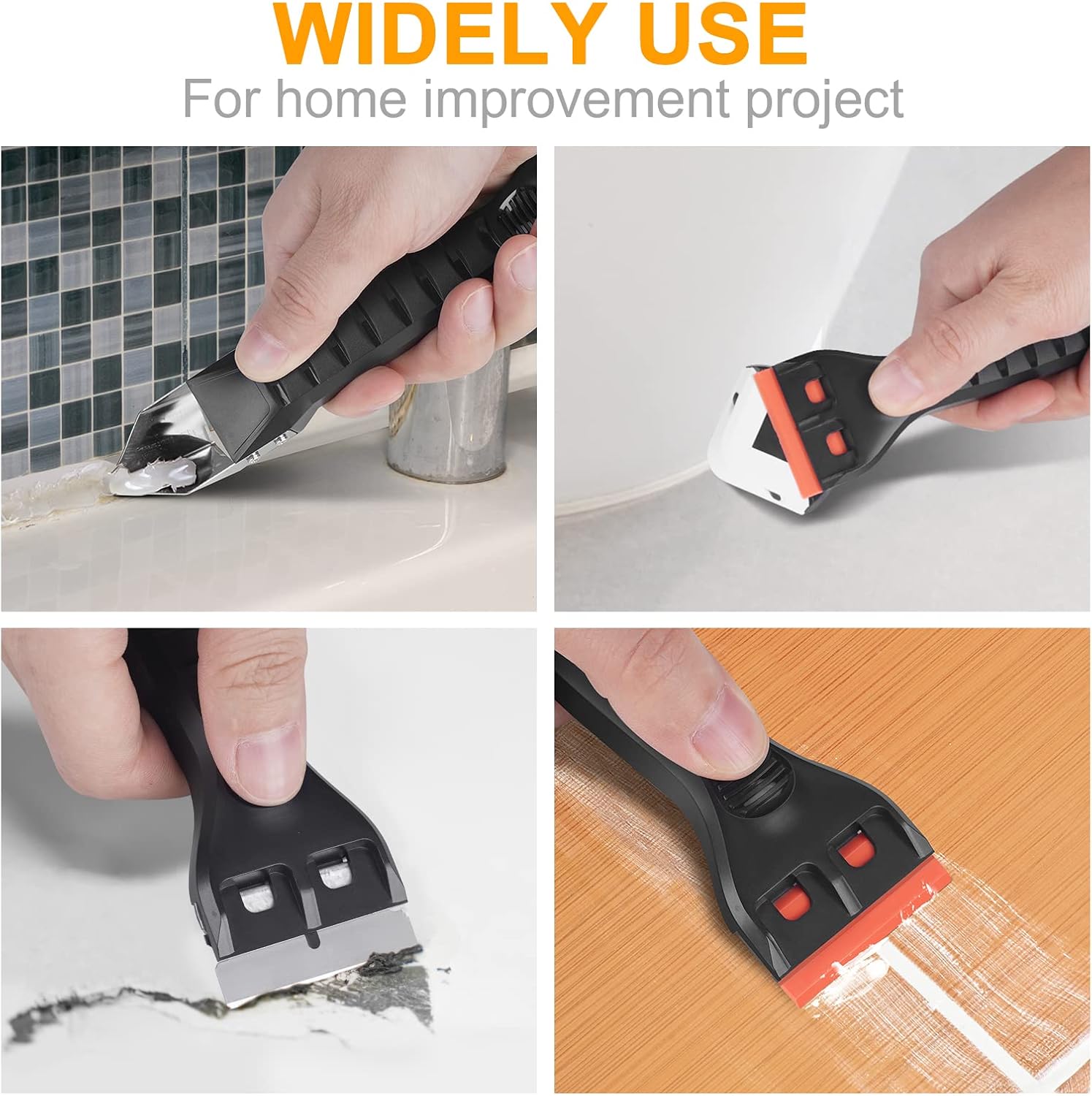 3-in-1 Silicone Caulking Tool: AMZBUY caulking tool is composed of a built-in scraper head, a flat scraper, and a silicone applicator that can instantly remove old caulk, clean residue glue, and smooth new caulk; It greatly enhances silicone bonding and improves the surface aesthetics of your home, making it a must-have tool for homeowners