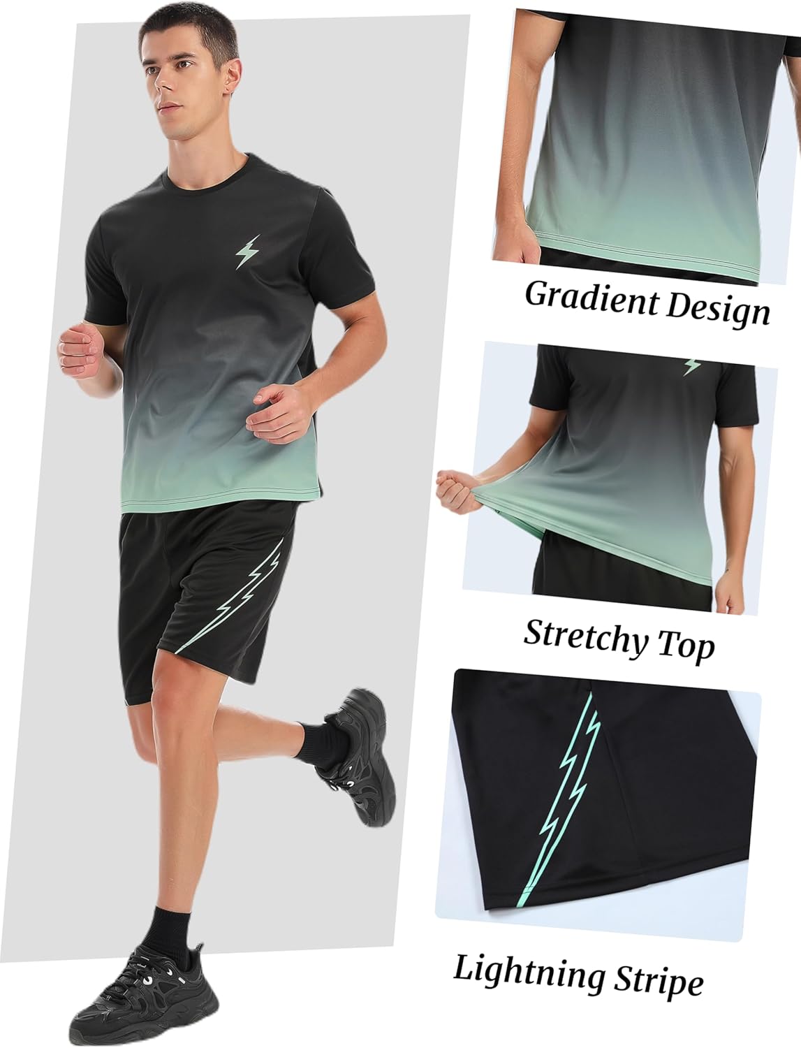 Simbora Men’s 6-Piece Workout Set, 3 Athletic T-Shirts & 3 Gym Shorts, Quick Dry Breathable Workout Activewear