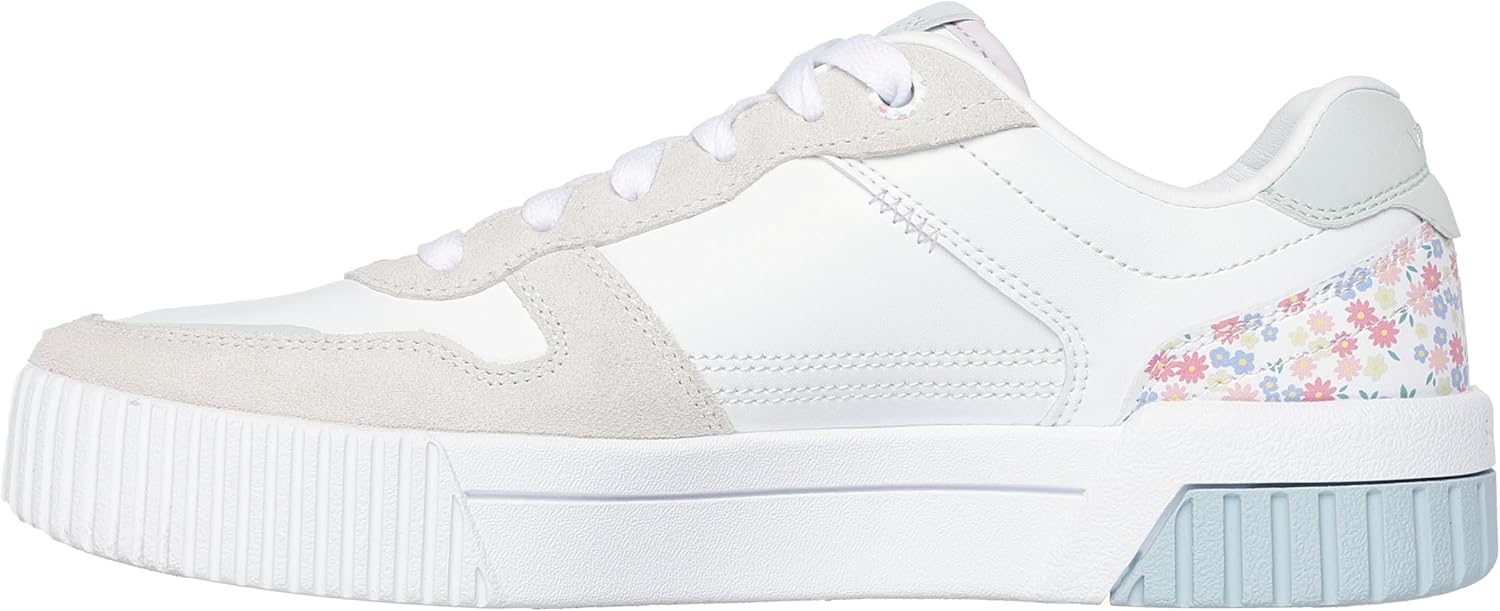 Step into style and comfort with these Skechers Women’s Jade Dainty Florals sneakers. These memory foam shoes for women feature a beautiful floral print heel cup combined with duraleather and suede overlay upper. The low-top court style design offers versatile casual wear, while the Air-Cooled Memory Foam cushioned insole ensures lasting comfort throughout your day. Perfect for those seeking both fashion and functionality in their memory foam womens shoes.