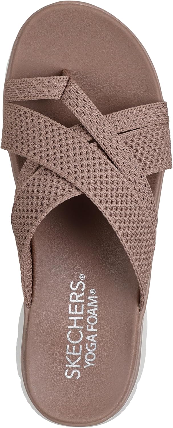 Step into comfort with these womens sandals from Skechers. The Summits Fantasy Walk sandals for women feature a breezy knitted strappy upper design perfect for casual wear. These comfortable sandals for women include a cushioned Yoga Foam footbed and flexible traction outsole. The vegan-friendly construction and machine washable design make these sandals both ethical and easy to maintain.