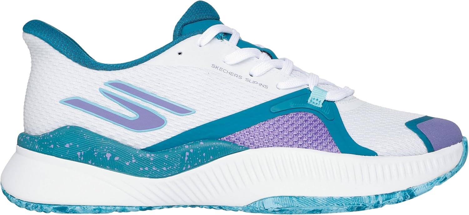 Experience lightweight comfort on the court wearing Skechers Hands Free Slip-ins: Tennis State Champ. Designed with our exclusive Heel Pillow, this mixed media tennis slip-on features a breathable mesh and synthetic overlay upper with a reinforced toe front for durability during overhead serves and volleys. A Move Foam insole, ULTRA GO midsole, and Goodyear Gold compound outsole round out the design, with the latter built for increased wear resistance – allowing the player to perform controlled slides on the court surface.