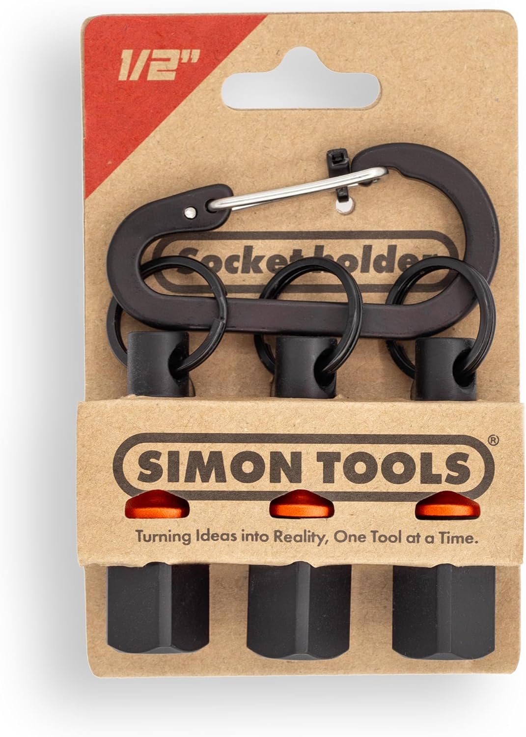 Simon Tools Socket Holders – Set of three 1/2 socket holders plus a carabiner for easy attachment and transport. Perfect for organizing and accessing your sockets quickly.