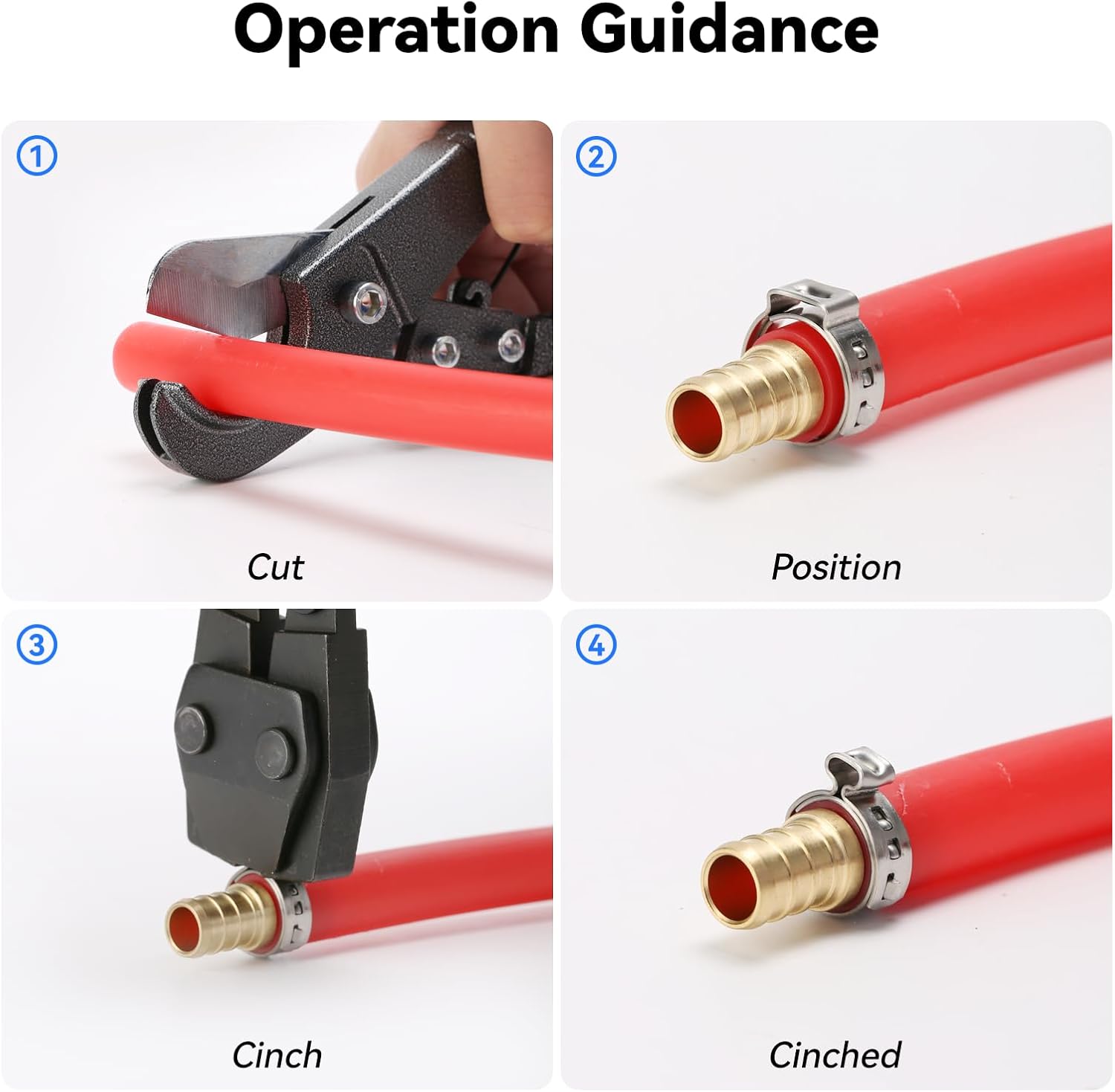 ALL-IN-ONE PEX INSTALLATION KIT: Get started instantly with Solimeta’s complete set. Includes 1 heavy-duty cinch clamp tool (fits 3/8″ to 1″ clamps), 1 efficient pipe cutter, 12 durable brass fittings (5 Coupling, 5 Elbow, 2 Tee), 20*1/2″ clamps, and 10*3/4″ stainless steel clamps.