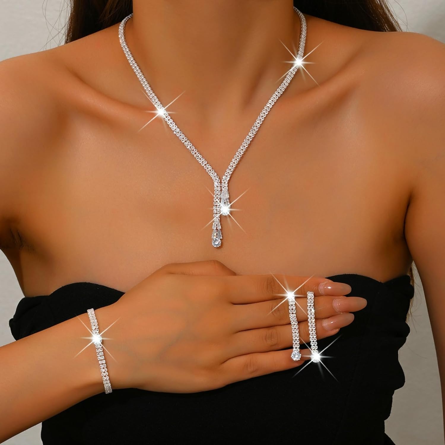 Be the first to review “Sparkling Rhinestone Jewelry Set for Women Elegant Crystal Zircon Necklace Ring Earrings Bracelet Bridal Wedding Prom Party Fashion Jewelry”