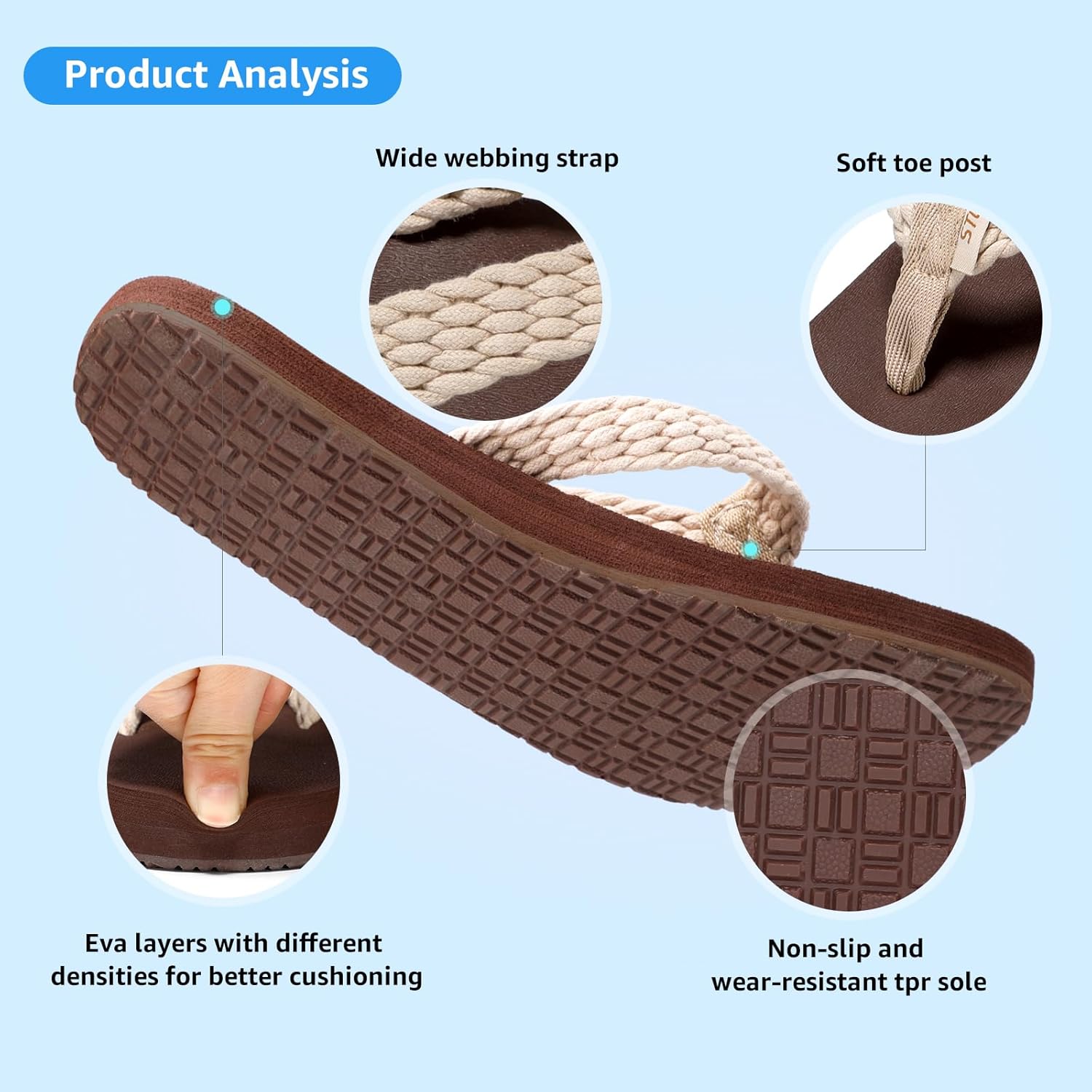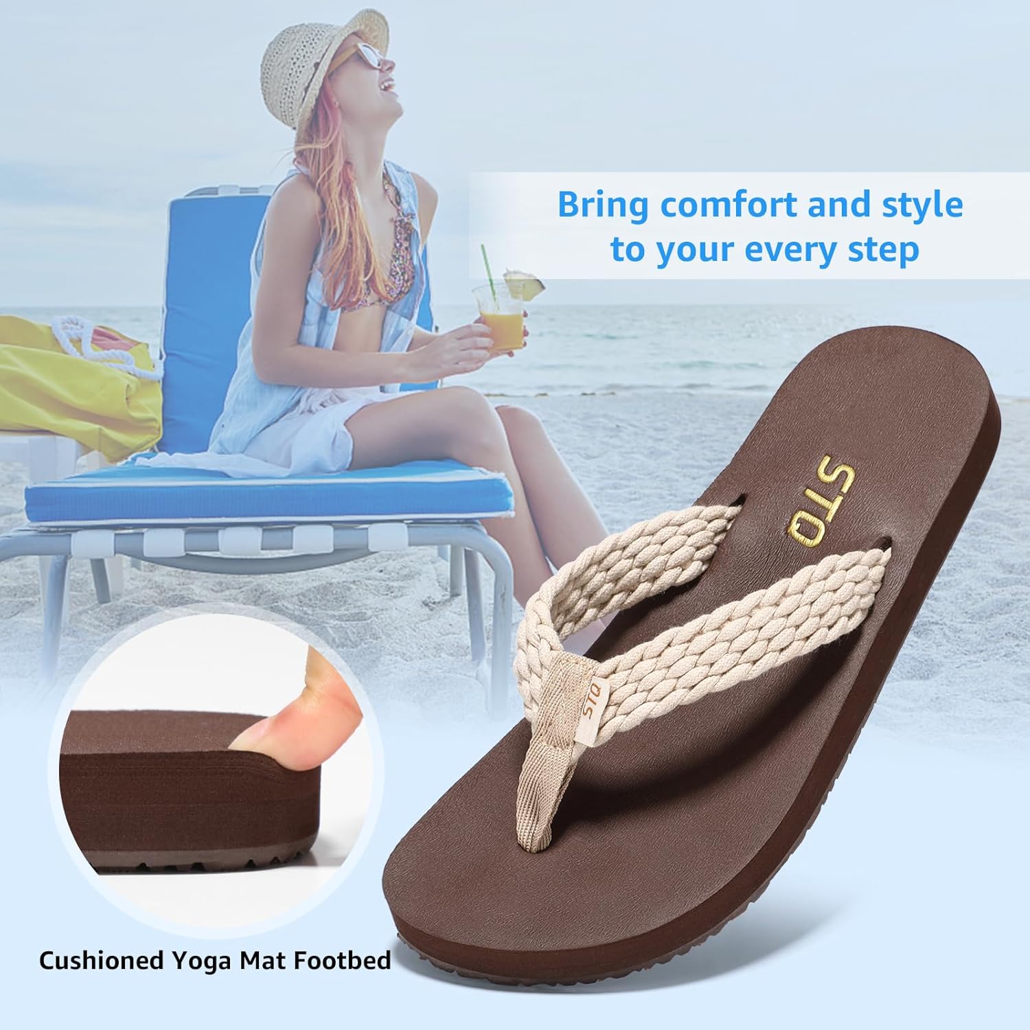 STQ Womens Quick Dry Flip Flops with Yoga Mat Sole丨Arch Support Thong Sandals