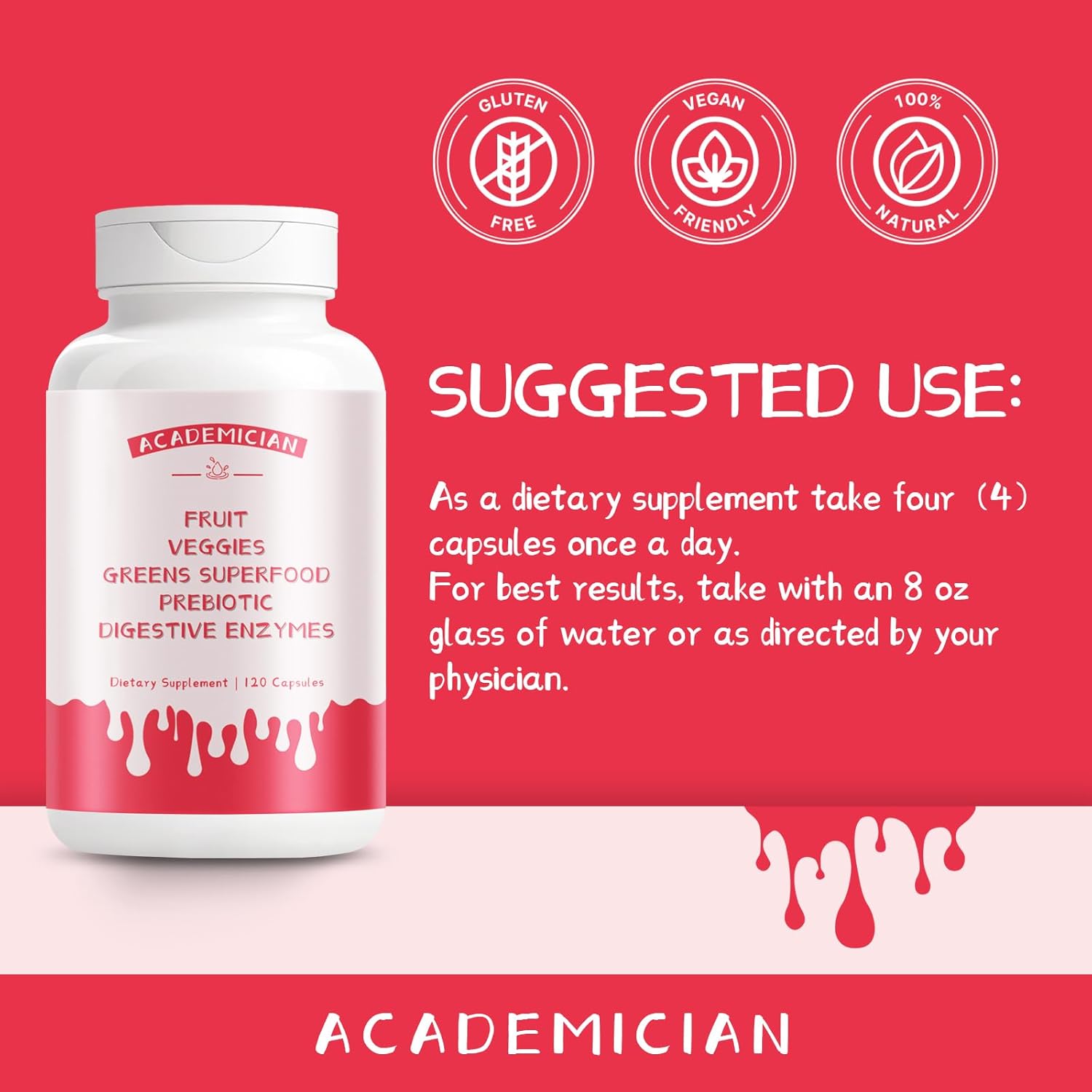 This comprehensive supplement capsule blends the natural goodness of fruits and vegetables, offering a diverse range of nutritional support from plant-based sources, with options crafted to suit vegan and vegetarian lifestyles for those embracing plant-powered nutrition. It also incorporates super greens, packing in green nutritional elements to enhance daily dietary intake, while featuring probiotics and prebiotics—including options with beneficial bacteria and varying potencies—to help maintain a balanced gut environment. Additionally, it includes digestive enzymes, designed to complement the digestive system and aid in natural digestion, making it a well-rounded addition to your daily routine, whether you’re seeking to enrich your diet, support gut comfort, or simply enhance overall dietary balance.