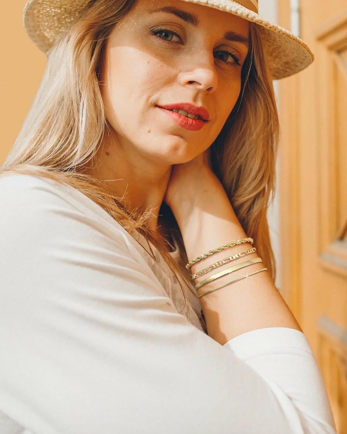 TEN MIRO 16k Chunky Gold Plated Bracelets for Women Waterproof, Womens Gold Plated Bracelets Stack Non Tarnish Stacked Chain Link Bracelets Rope Figaro Herringbone Box Bracelet Jewelry Gifts