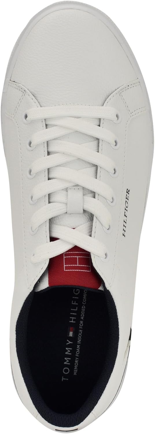 The Tommy Hilfiger Rocci shoes are classic low-top sneakers with a subtly embossed round toe silhouette and heel bumpers. These sneakers feature a lace-up design and memory foam insole that provides ease and comfort. The faux leather upper of these shoes offers superior comfort and breathability while the 100% recycled polyester lining provides all-day comfort. These lace-up shoes are perfect to pair with different outfits and styles. Synthetic rubber outsole.