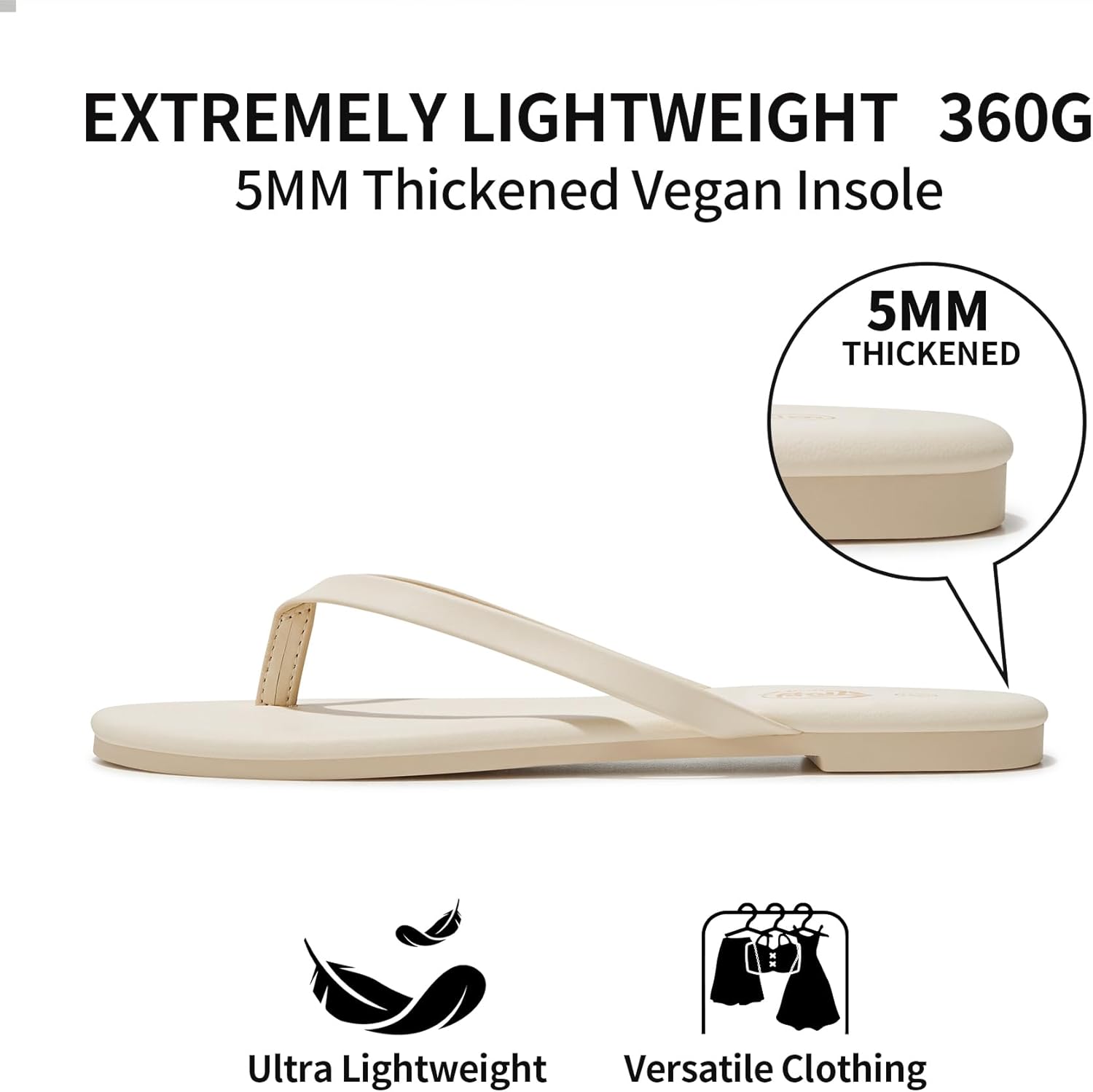 Trary Flip Flops for Women,Comfortable Flat Sandals with Arch Support,Memory Foam Flat Thong Sandals,Dressy Summer Slides for Beach Vacation