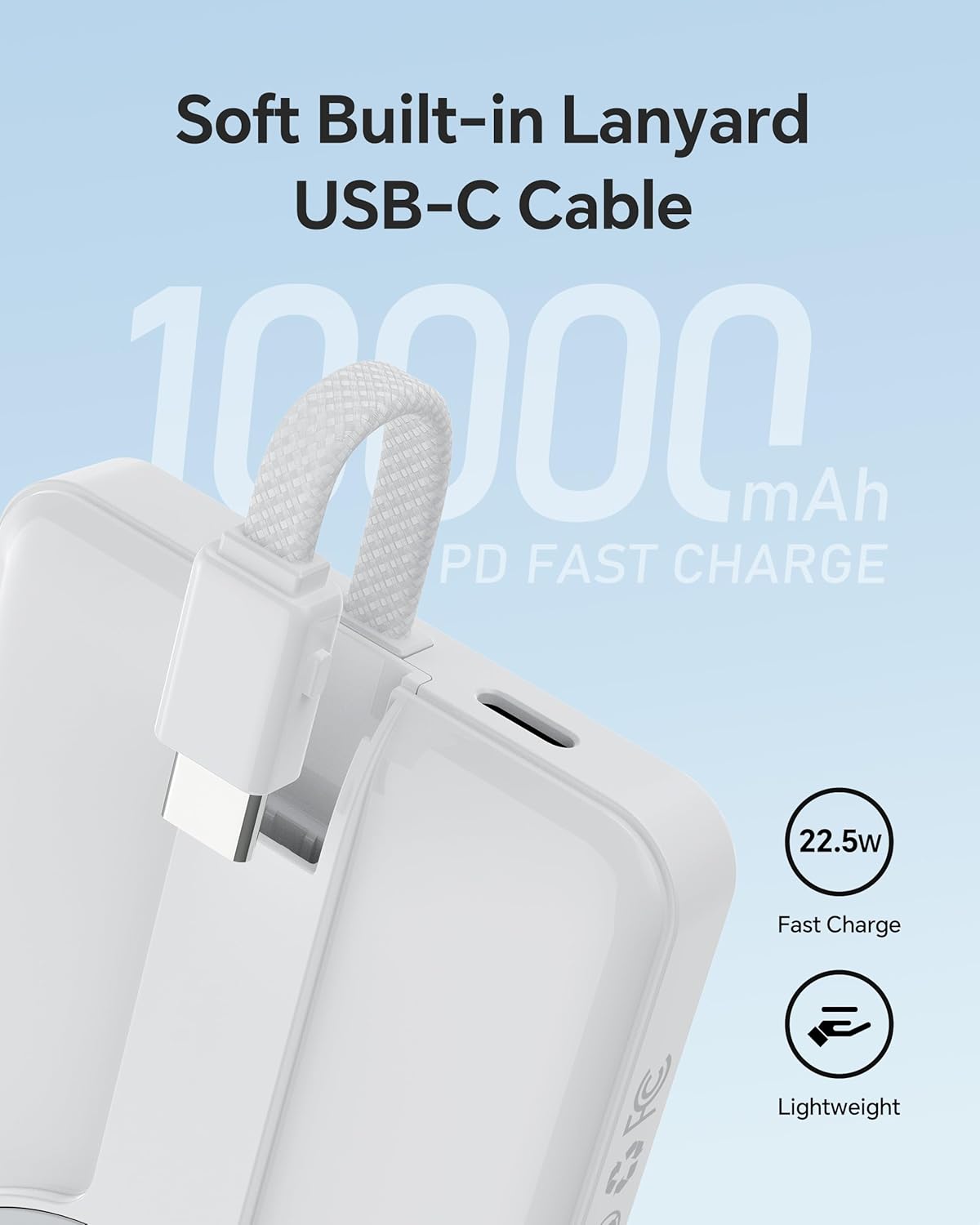 Ultra Slim Portable Charger, 10000mAh Magnetic Power Bank with Build-in USB-C Cable, 22.5W Max Fast Charging Battery Pack for iPhone 15/16 Series MacBook, Galaxy, iPad and etc.