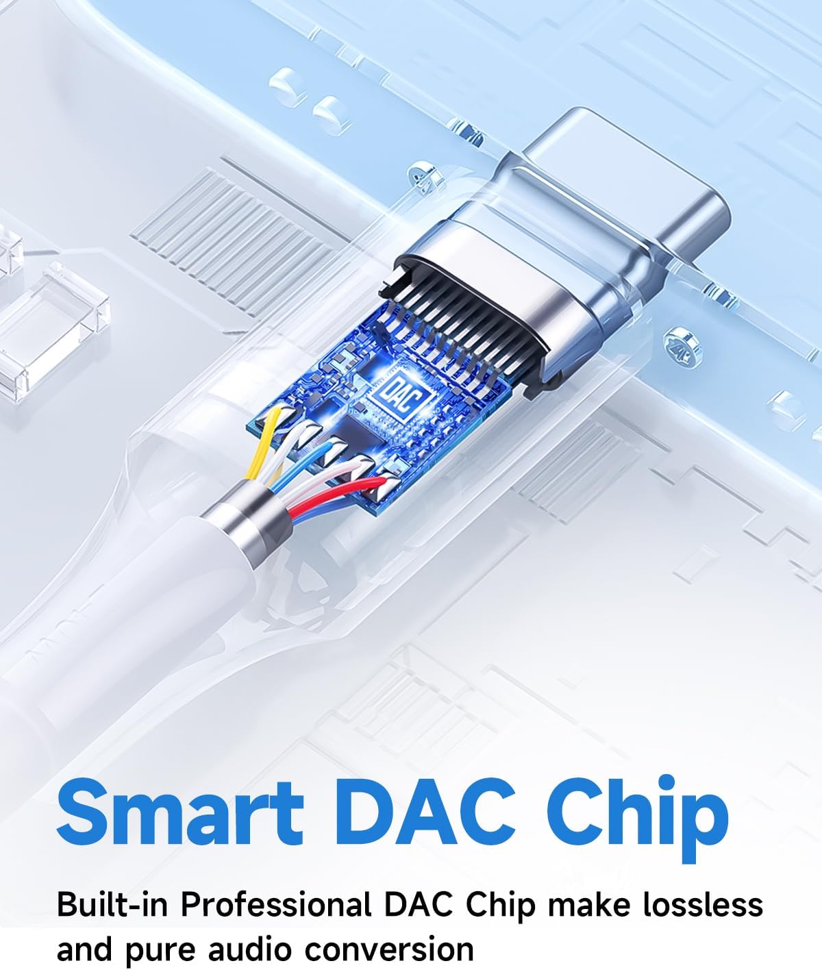 【Premium Sound Quality】This USB C to 3.5mm headphone jack adapter adopts an advanced DAC smart chip. This 2-in-1 USB C to headphone adapter delivers rich and immersive audio. The USB C to Aux adapter enables high-resolution audio output and noise reduction up to 24bit/48kHz to enhance the original sound quality of your USB C mobile phone, giving you hi-fi stereo audio with less loss and noise