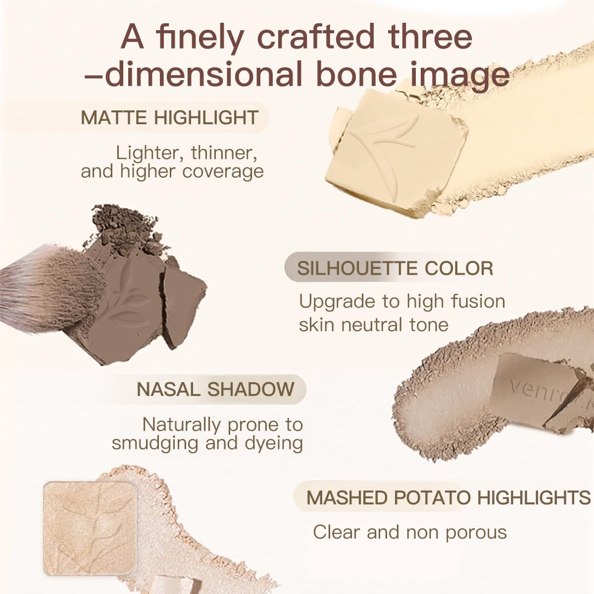 Venrock 4-Colors Highlight & Contour Palette Matte Highlighter Contour Compact Natural Glow Contour Powder Blendable Face Makeup for Beginners for All Skin Tones Gifts for Women Beauty for Festivals
