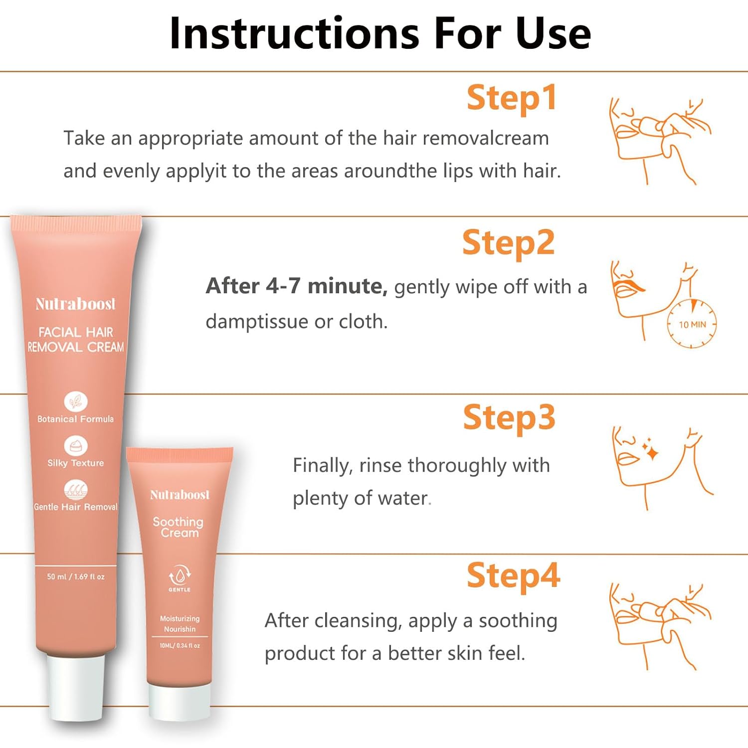 Women’s Facial Hair Removal Cream,2-in-1 Hair Depilatory Post Care Soothing Cream, 4 Min Painless Facial Hair Removal,Suitable For Sensitive Skin (1)